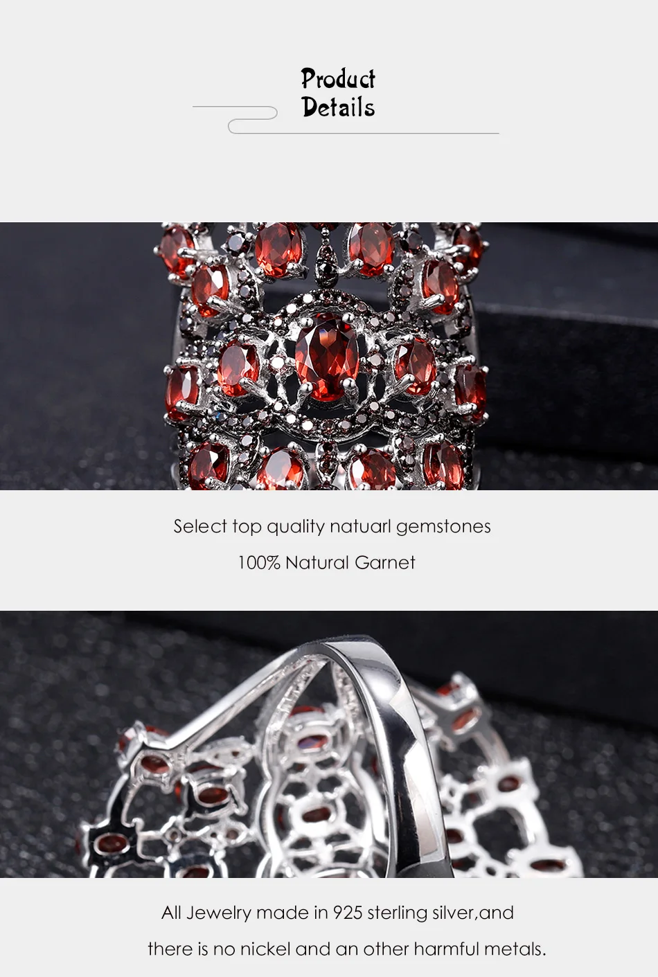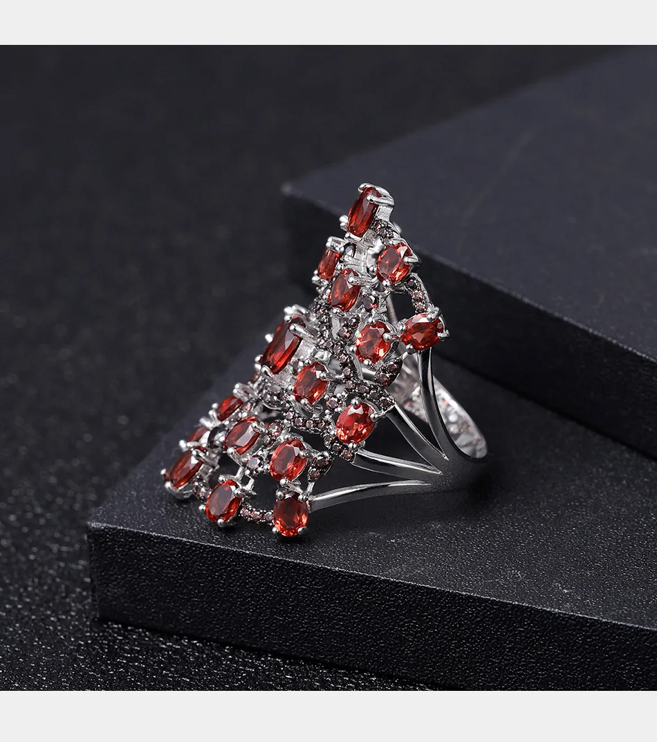 Кольцо женское из серебра 925 пробы, с натуральным красным гранатом