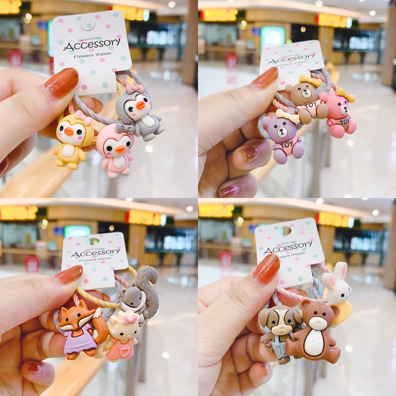 3 шт. новый милый мультфильм цветок Пингвин принцесса головной убор Детские эластичные повязки для волос Детские веревки Аксессуары для девочек детский головной убор