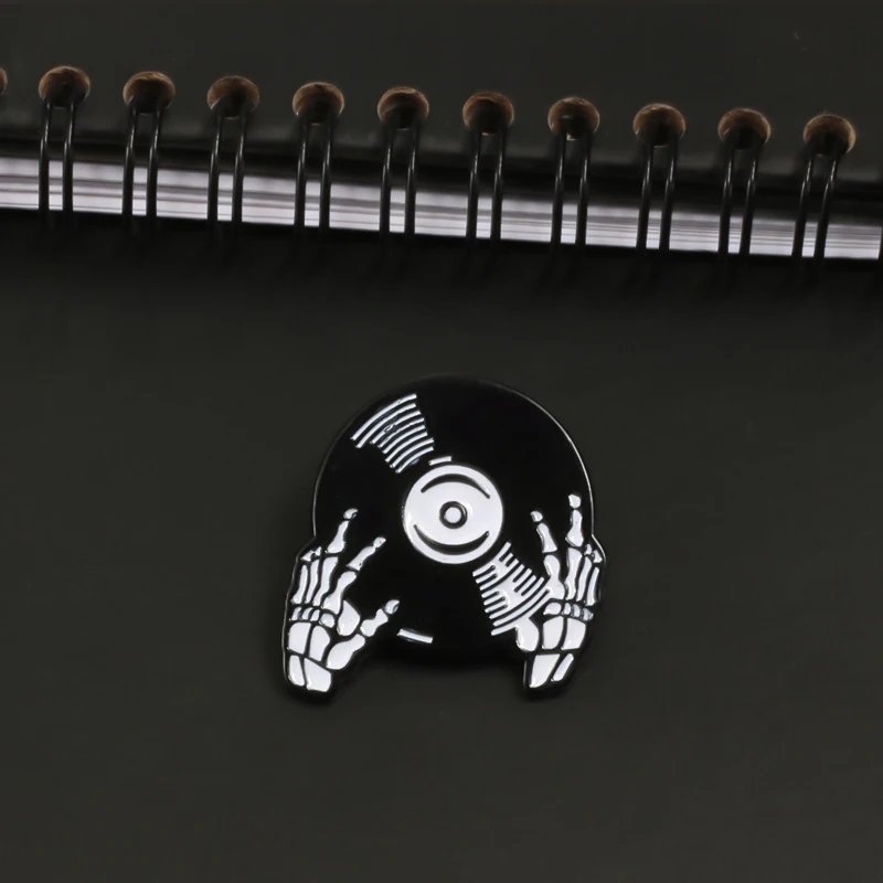 Эмалированный значок в виде песочных часов с виниловыми пластинками, в стиле панк, брошь с музыкальной тематикой, для джинсовых рубашек, лацкан, крутые готические ювелирные изделия, подарок