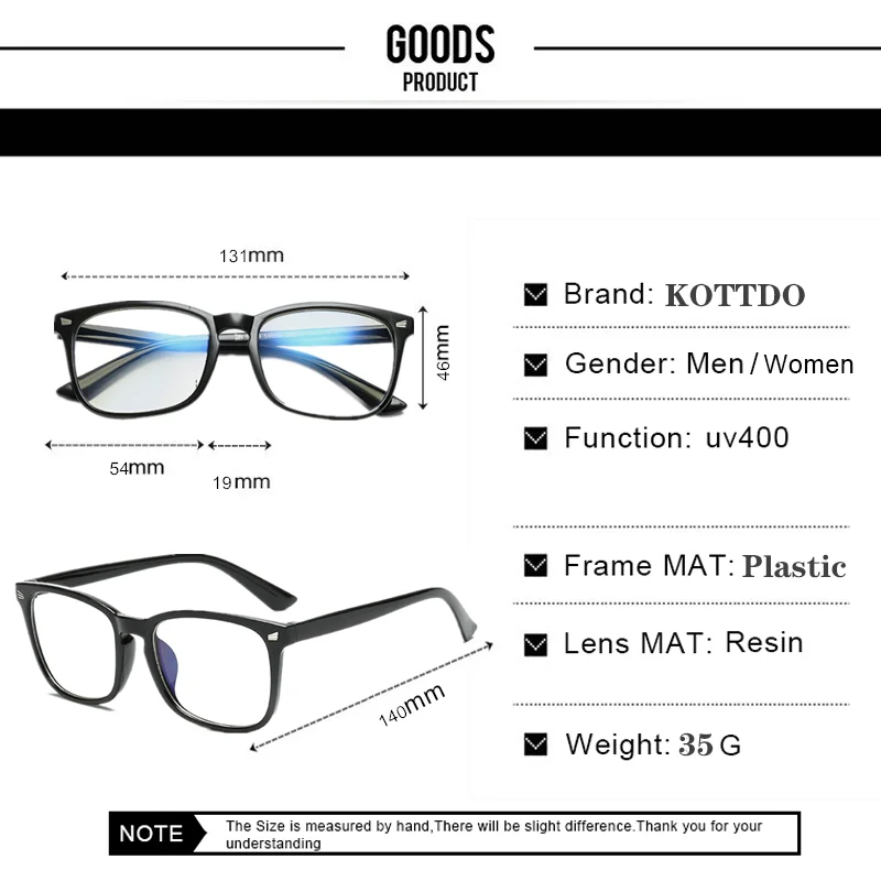 Очки KOTTDO Квадратные Классические для мужчин и женщин, винтажные прозрачные оправы для очков по рецепту, пластиковая оправа