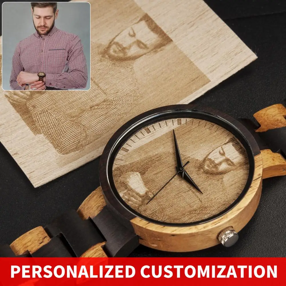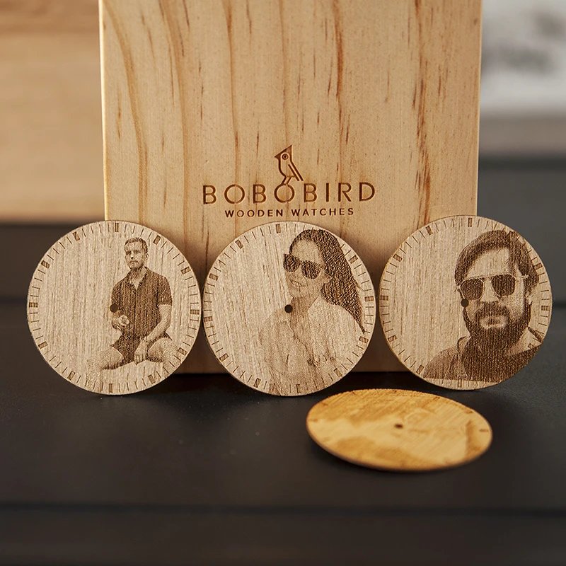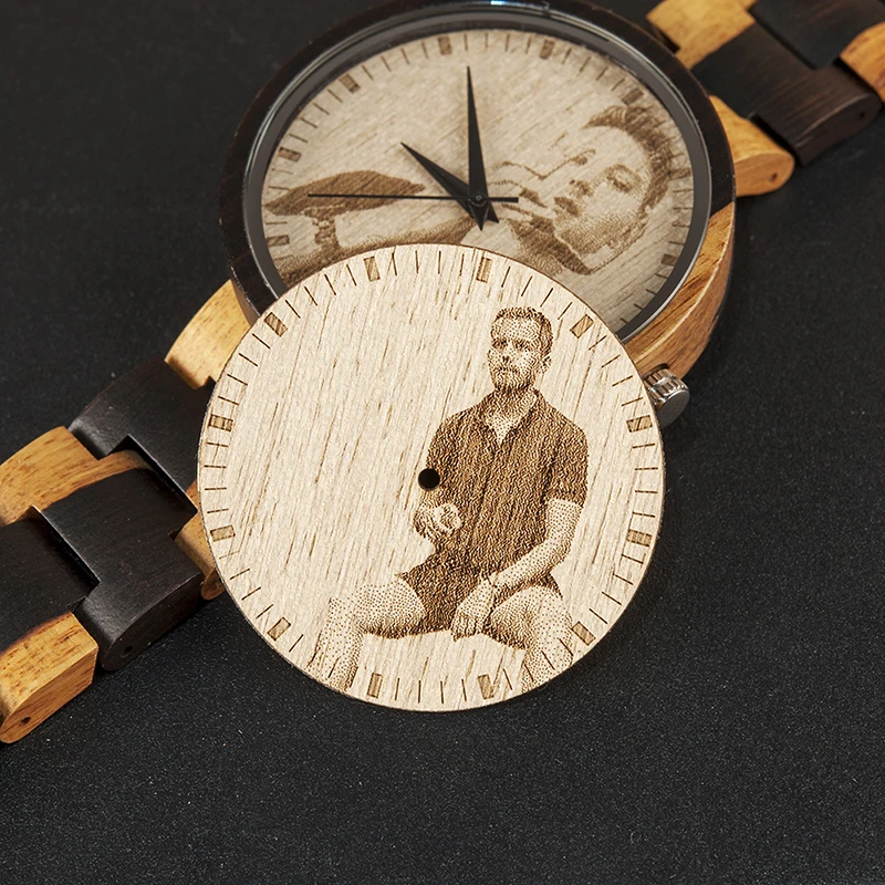 Мужские часы BOBO BIRD, сверхвысокая точность, лазерная фотография, деревянные часы, двухцветный ремешок, индивидуальный Уникальный рождественский подарок для Него