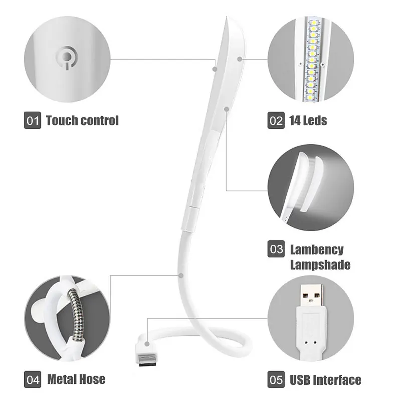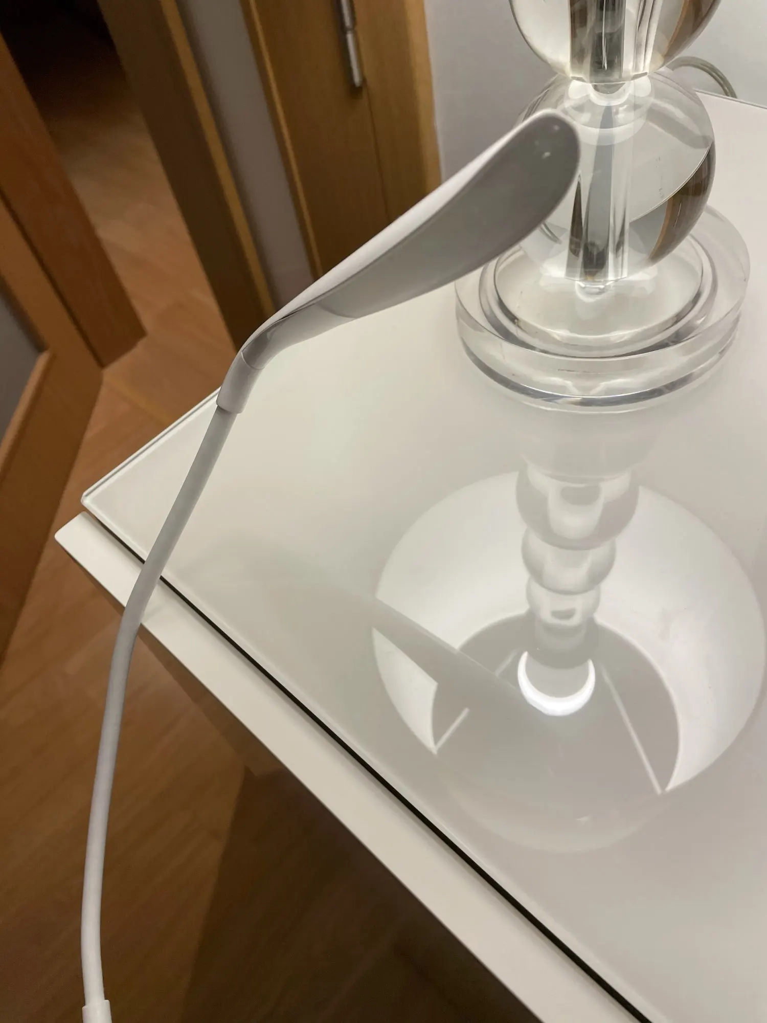 Гибкая и стильна. Изгибы ножки хорошо фиксируются. Удобный сенсорный выключатель. На первом режиме освещение как у ночника - неяркое, на третьем - вполне нормальное для небольшой рабочей площади (клавиатура, полка). Мне всё нравится. Теперь планирую заказать такую же, но в чёрном цвете. Доставка быстрая. Упаковка надёжная.