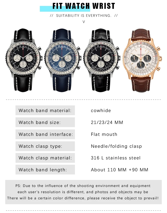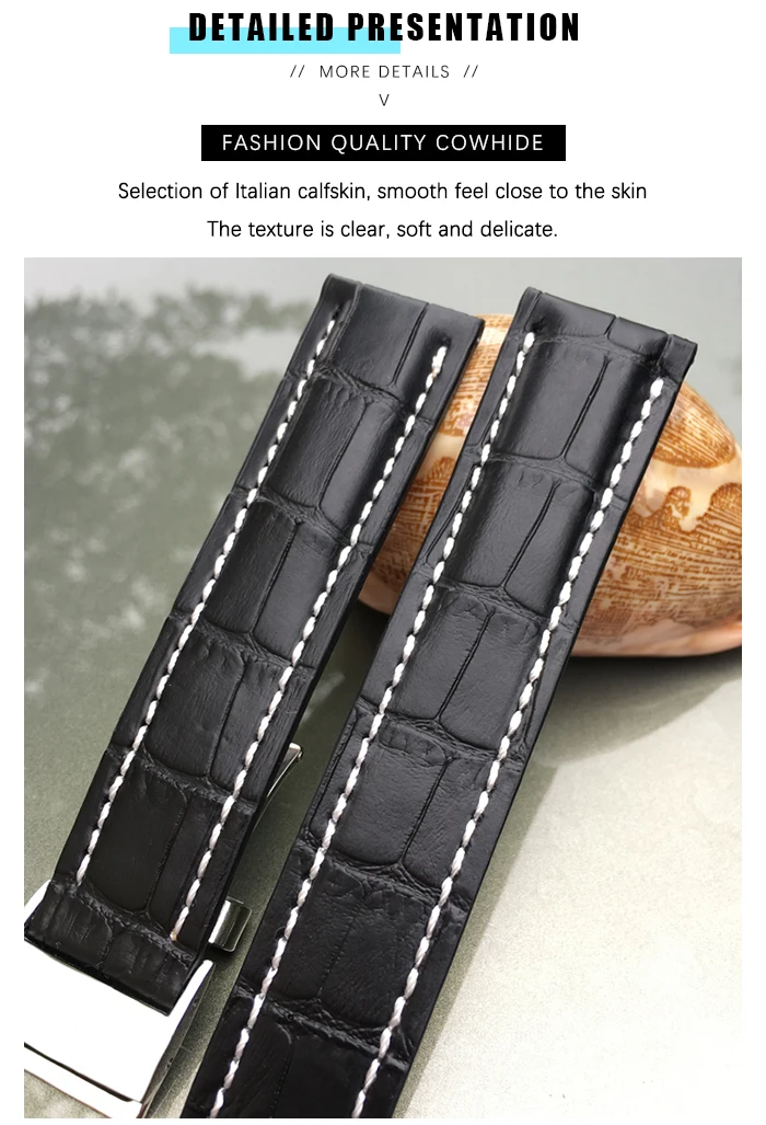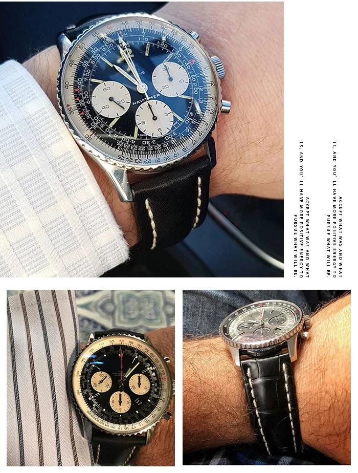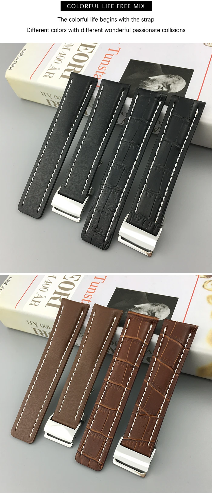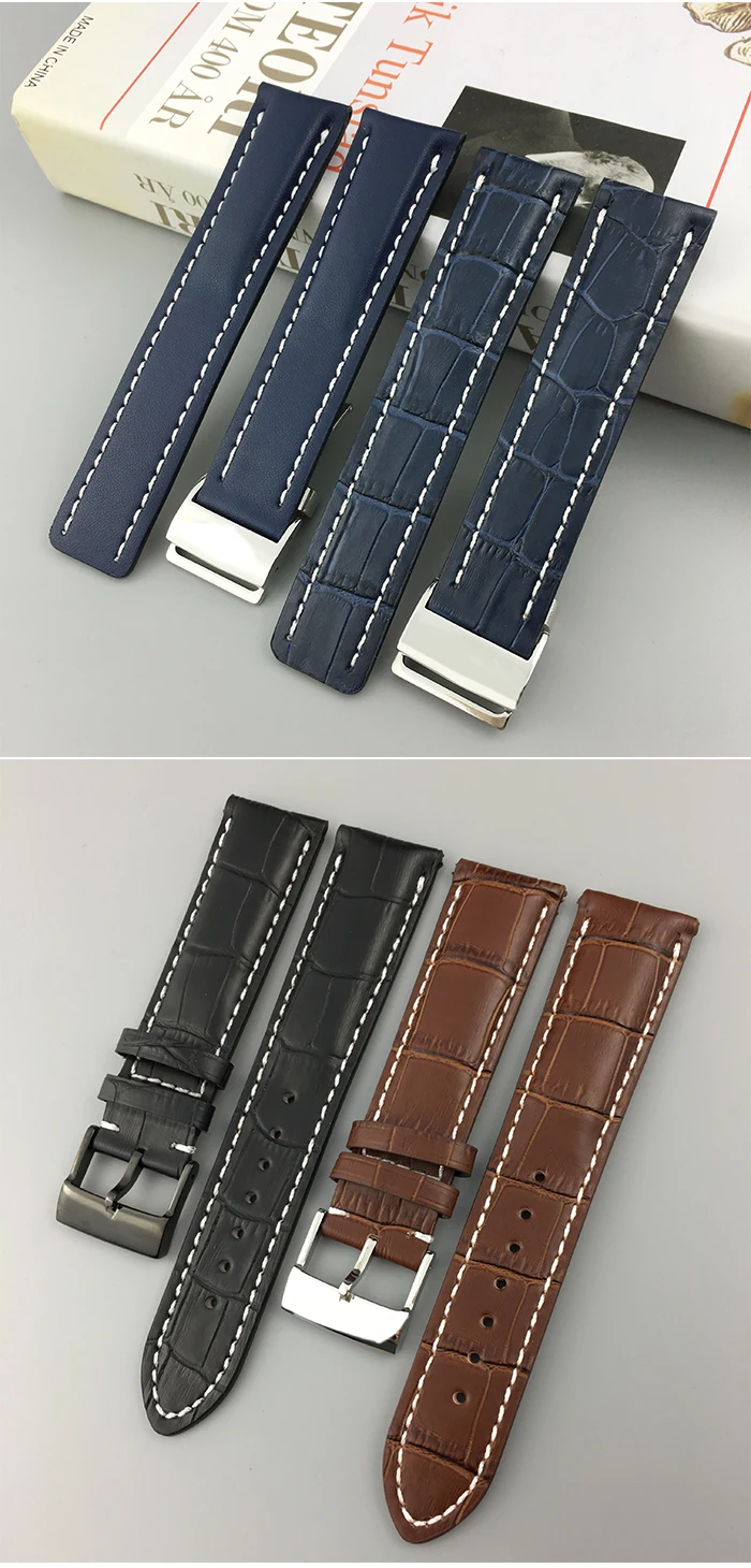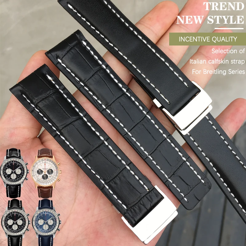 21 мм 22 мм 23 мм 24 мм итальянский ремешок из воловьей кожи черный синий коричневый кожаный ремешок для часов подходит для серии Breitling Часы для мужчин
