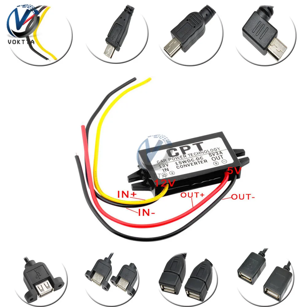 DC-DC 12V to 5V 3A 15W Автомобильный водонепроницаемый преобразователь источника питания Mini USB понижающий блок питания выходной адаптер для автомобиля