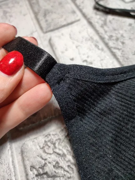 Ткань приятная, швы ровные; чашечки маловаты, поэтому пришлось вынуть. Единственное отличие от картинки – вырез, по факту он круглый, а на фото близится к V-образному. Заказ шёл в СПб чуть больше месяца.