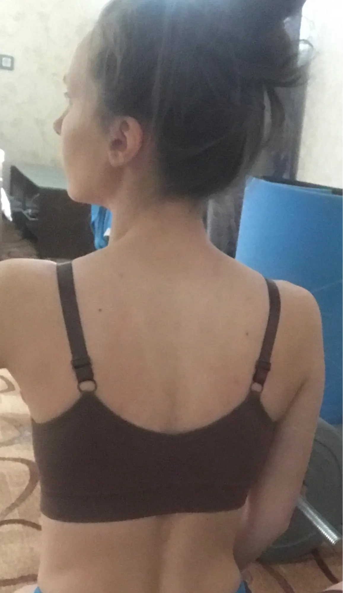 фото чёт перевернулись, в галерее телефона нормально выглядят, ну да ладно. Хороший топ, очень радует возможность регулировки бретелей, в других топах такого нет. Брала в качестве эксперимента, мой размер где-то 85 CD, налезает нормально, но растягивается и начинает просвечивать. Цвет на фото продавца верный, мой исказила камера, он не такой красный. Если подхудну (бог знает случится ли это когда-нибудь уже) и грудь уйдёт, то возьму ещё раз