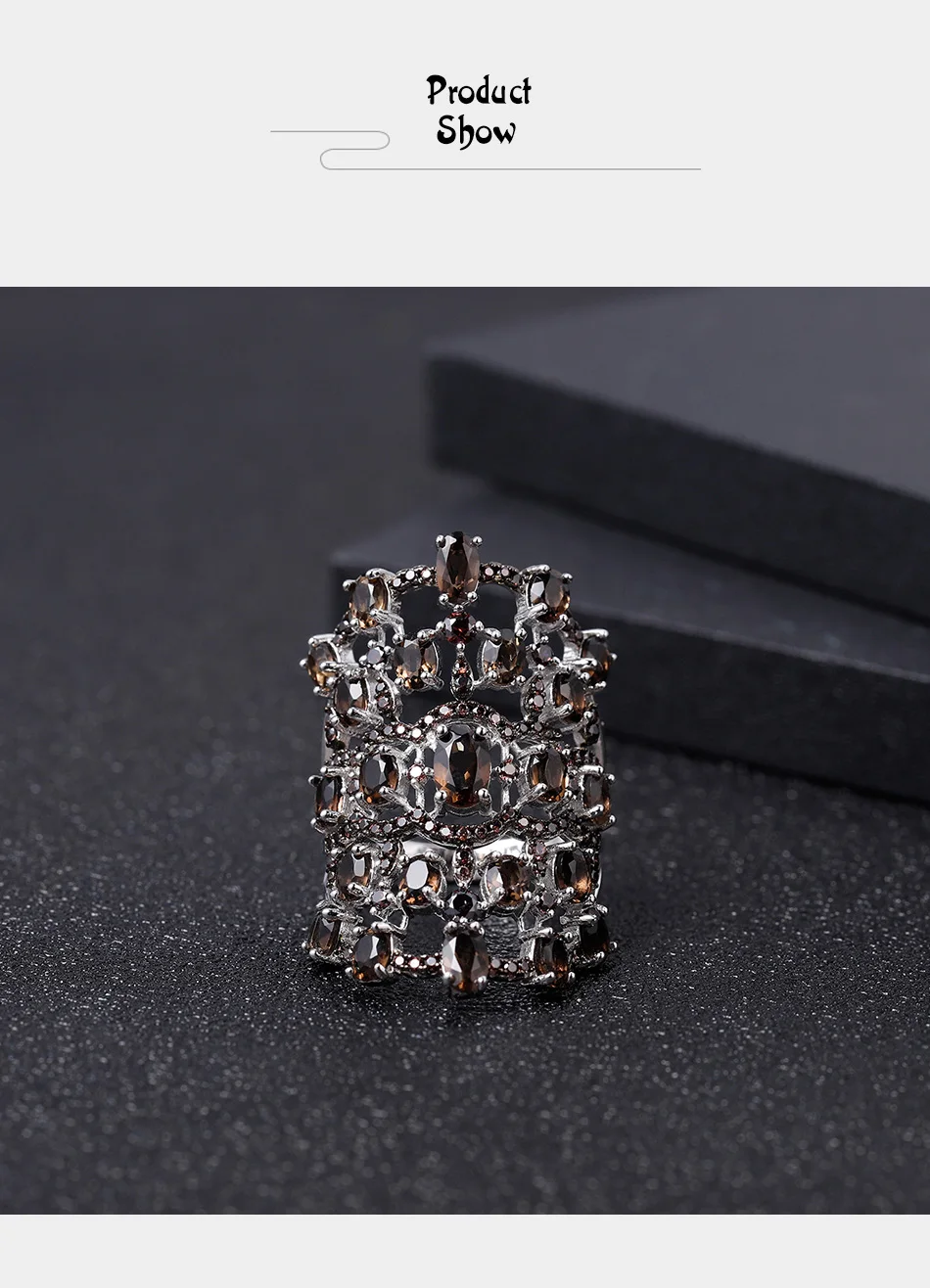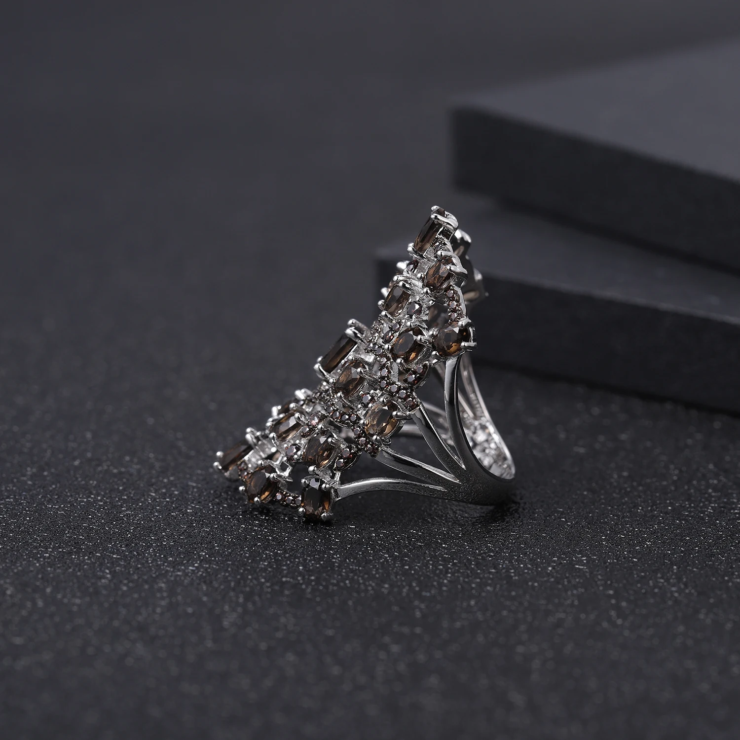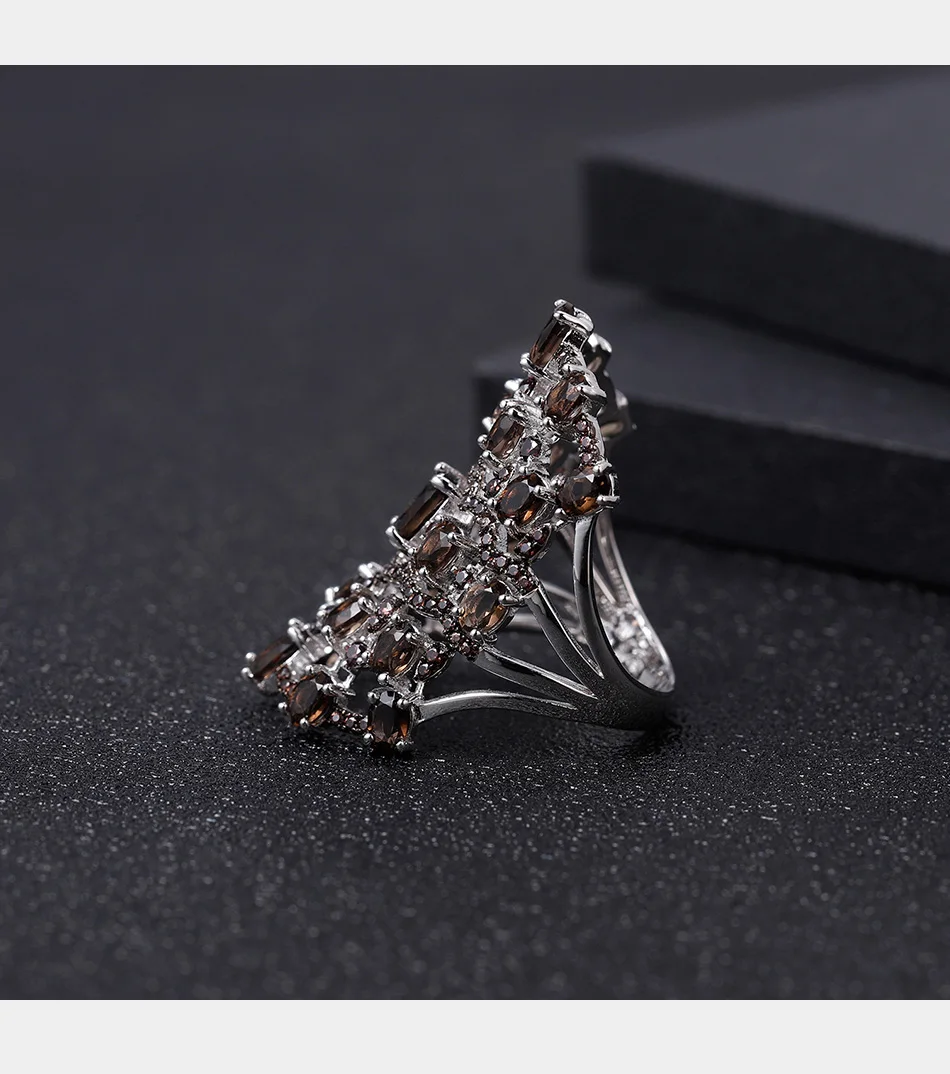 Кольцо женское из серебра 925 пробы, с натуральным дымчатым кварцем 7,17 карата
