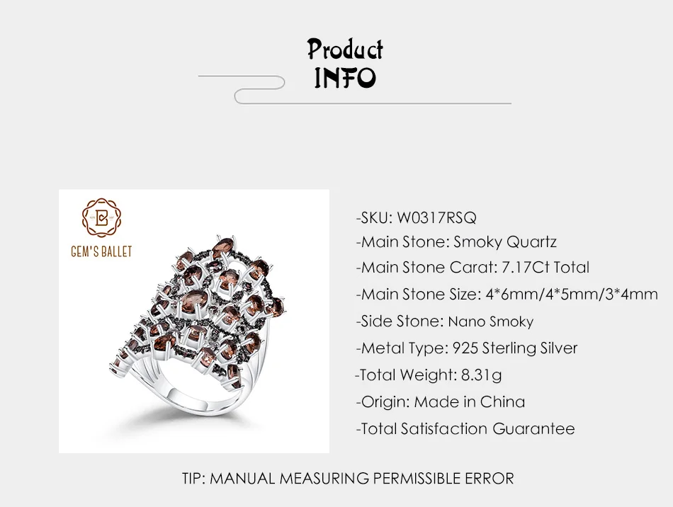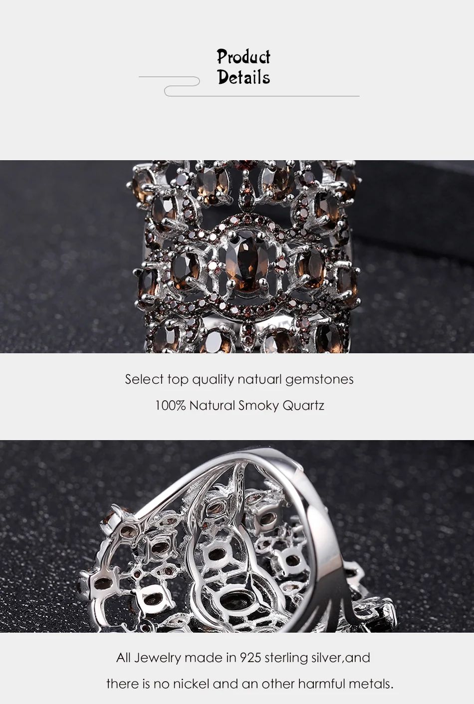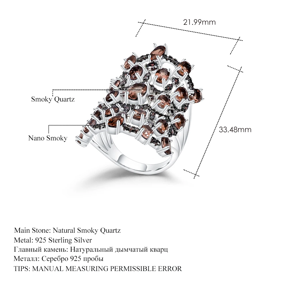 Кольцо женское из серебра 925 пробы, с натуральным дымчатым кварцем 7,17 карата