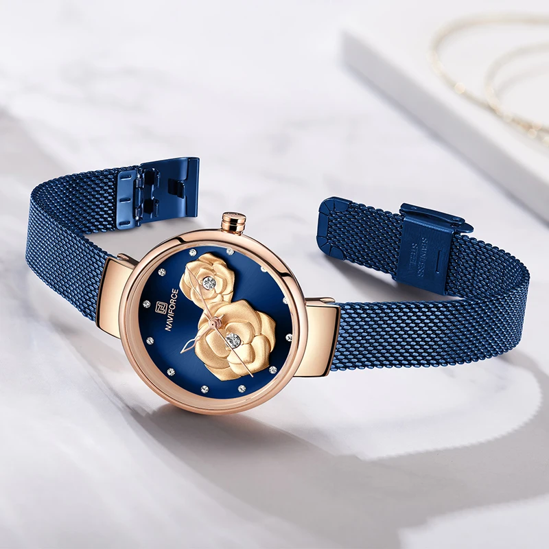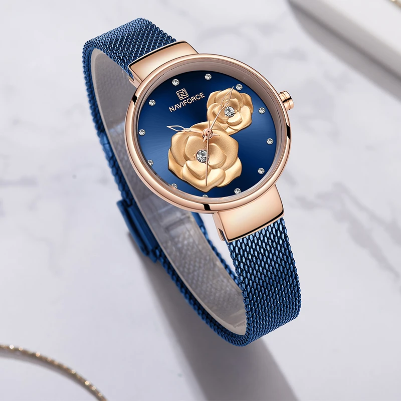Женские наручные часы NAVIFORCE, роскошные стильные кварцевые часы с двойным цветком и циферблатом, модные наручные часы, 2019