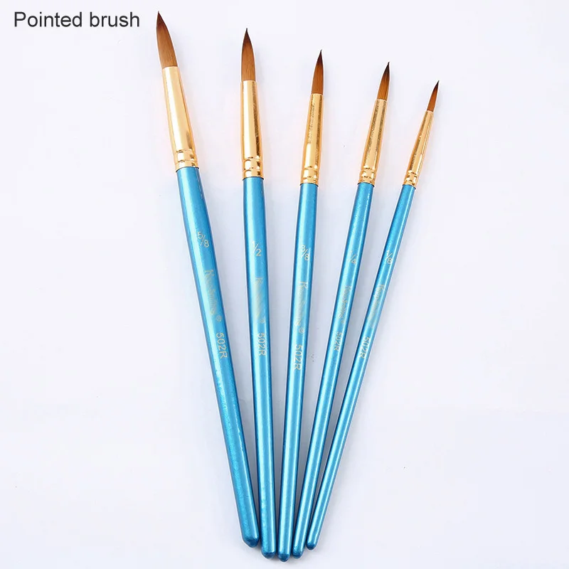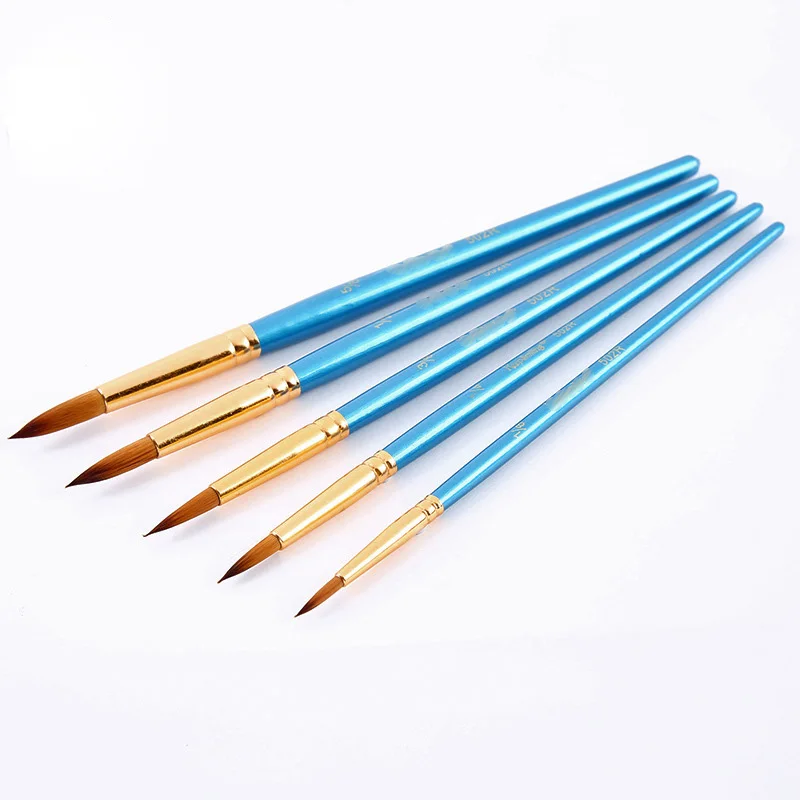 Набор кистей нейлоновых, товары для рукоделия, 5 шт., для рисования акварелью и гуашью
