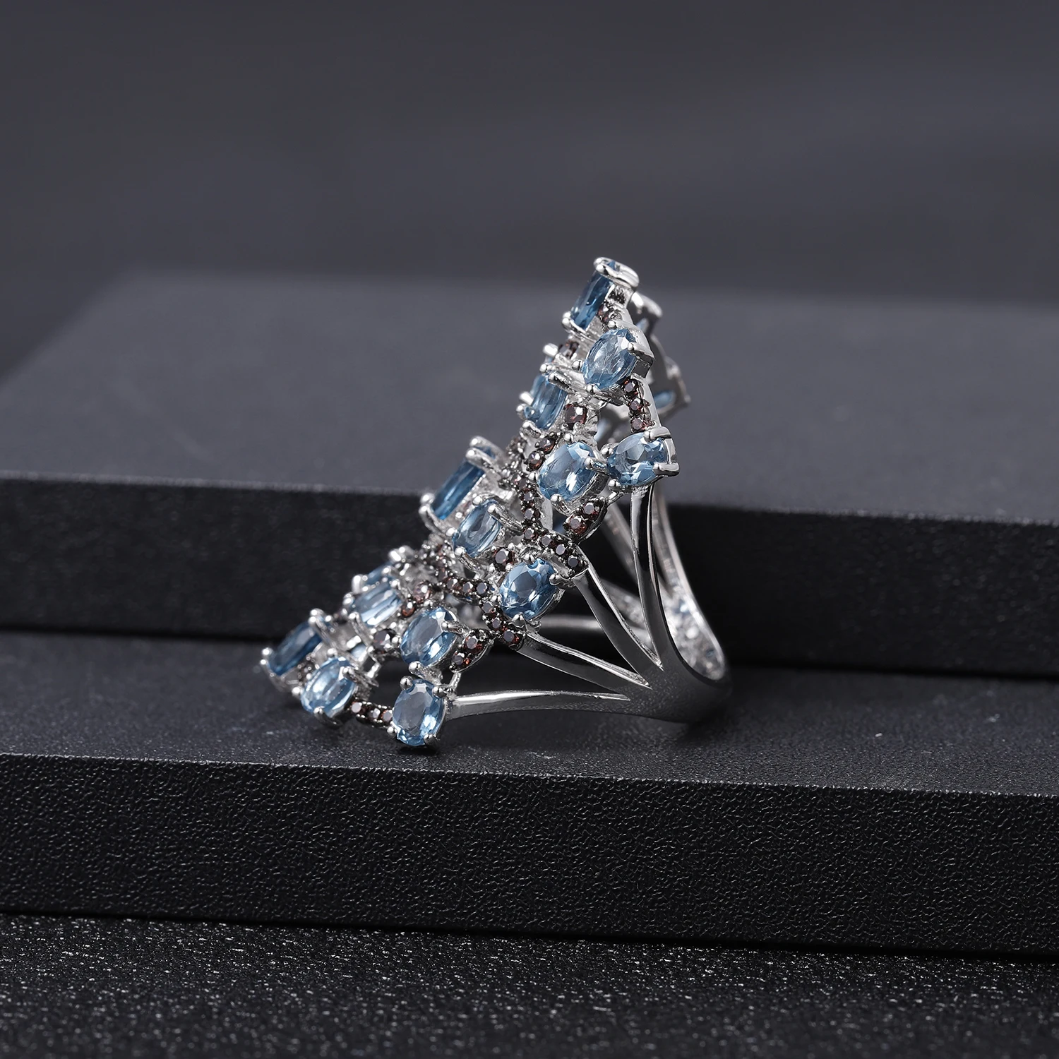 Женское кольцо из серебра 925 пробы, с натуральным голубым топазом ...