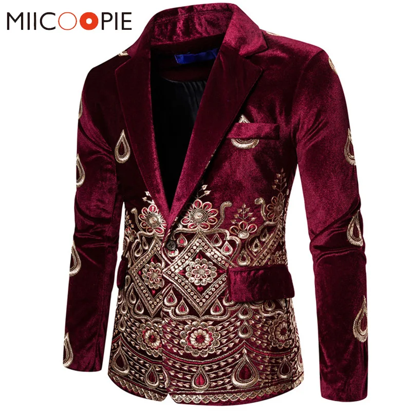 Свадебные костюмы с цветочной вышивкой для мужчин, роскошный винный вельветовый официальный приталенный мужской пиджак на одной пуговице для вечеринок