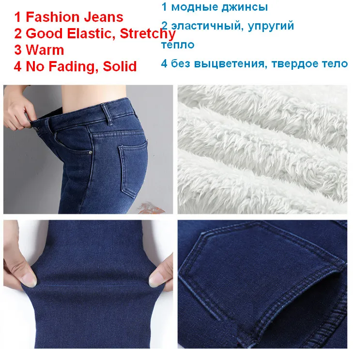 Женские кашемировые джинсы с высокой талией, обтягивающие плотные повседневные брюки, эластичные бархатные джинсовые брюки, уличная одежда, большие размеры, ouc672