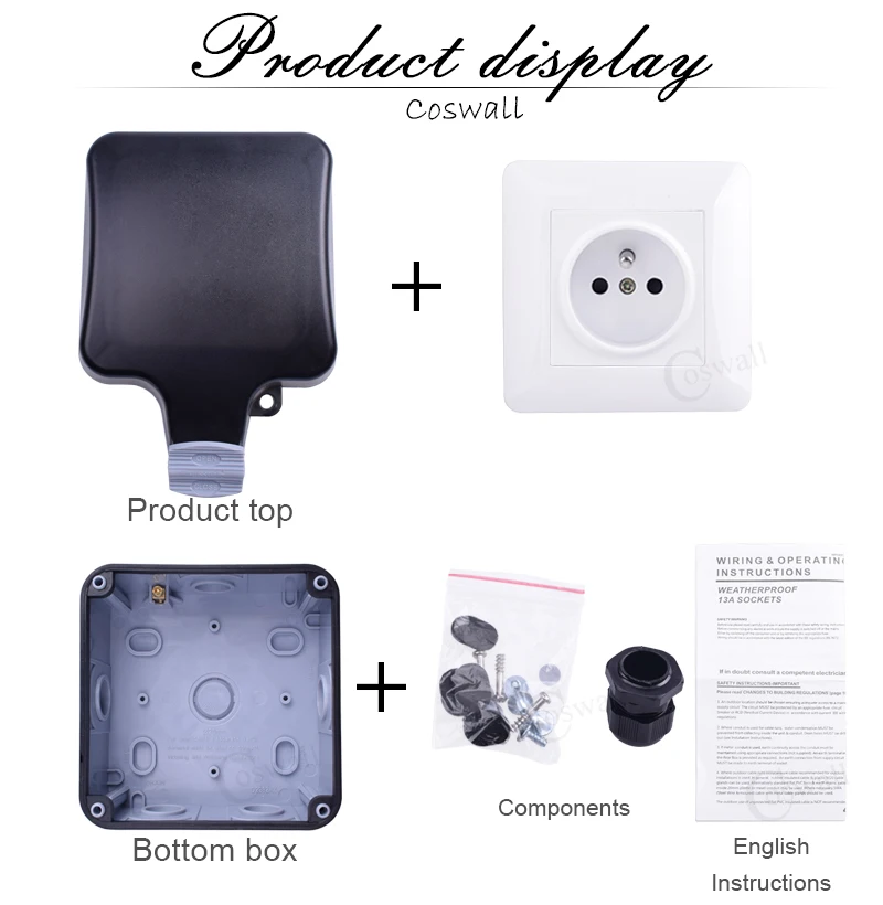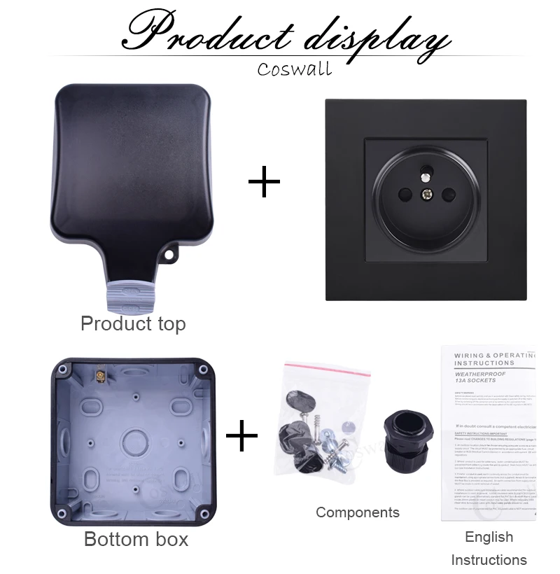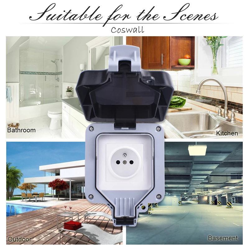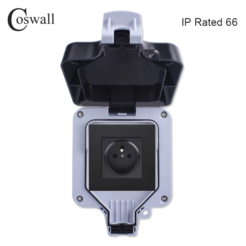 Водонепроницаемая уличная розетка Coswall IP66, настенная розетка черного и белого цвета, 16 А, французская полировка, стандартная розетка с заземлением