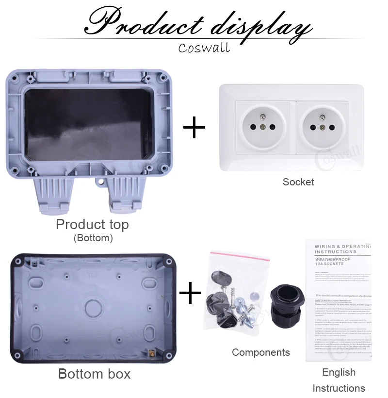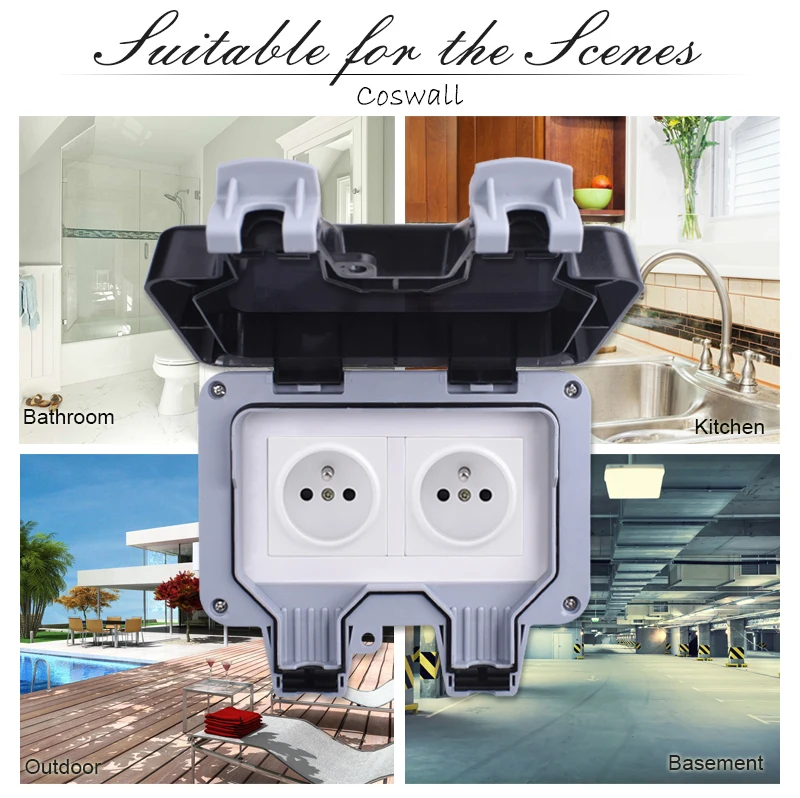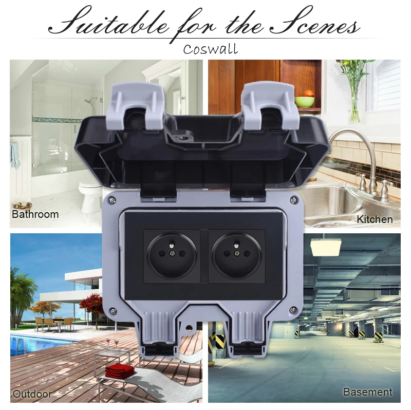 Погодостойкая Водонепроницаемая уличная настенная розетка Coswall IP66, 16 А, стандартная электрическая розетка с двойной полировкой, с заземлением