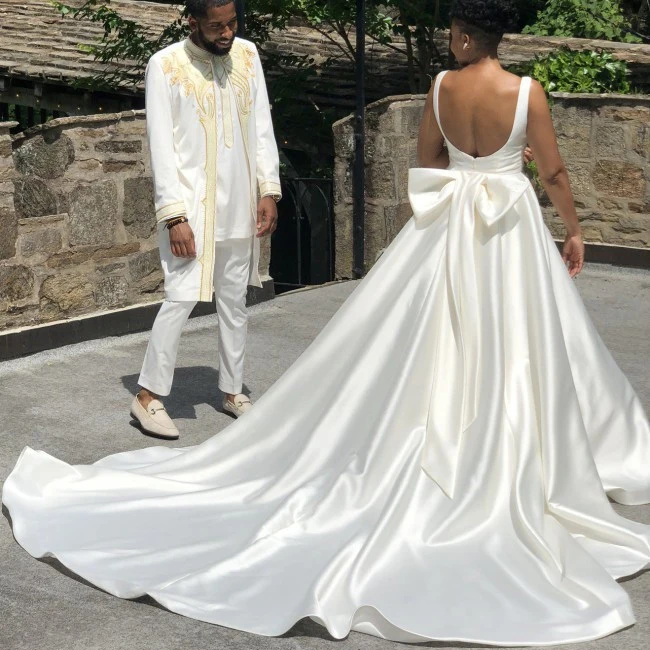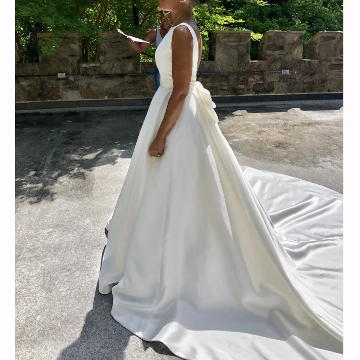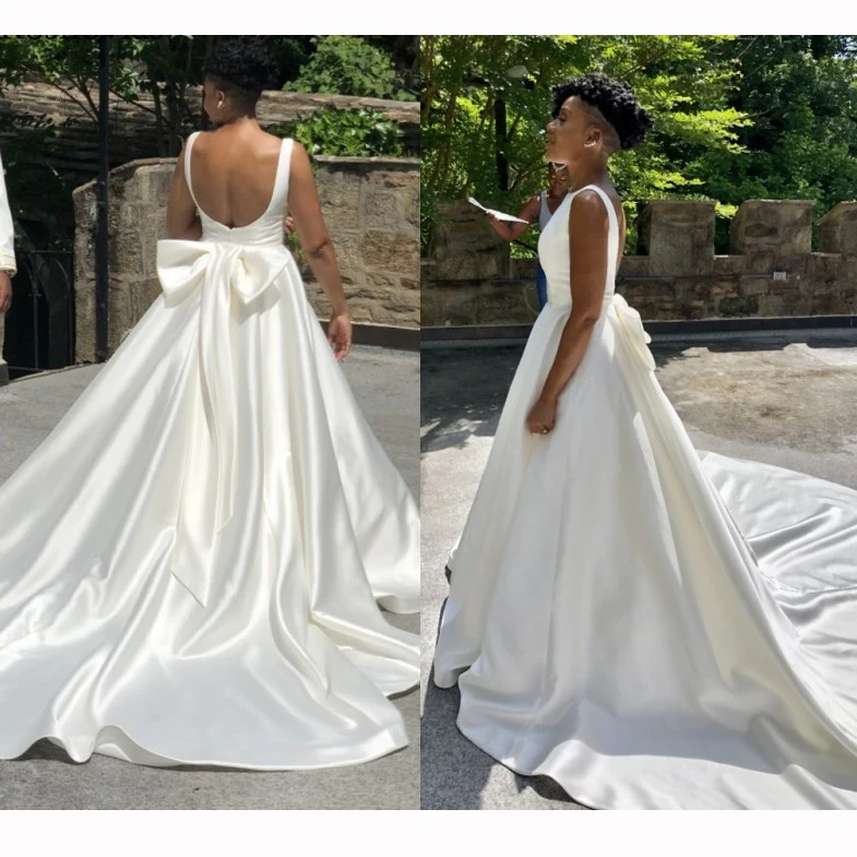 Элегантное искусственное шелковое свадебное платье, арабские сексуальные свадебные платья без рукавов с открытой спиной и бантом