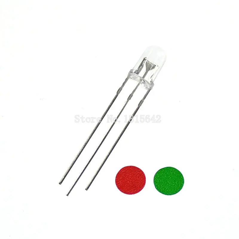 Круглый диод, прозрачный, матовый, красный и зеленый, общий анодкатод, 100 шт., 3 мм, 5 мм