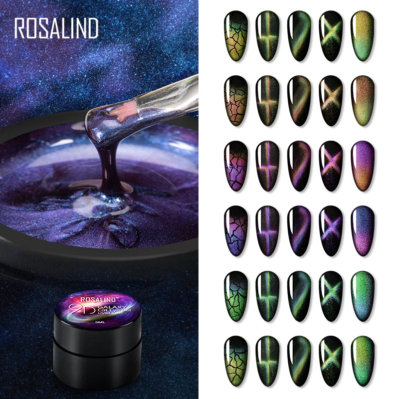 Гель-лак для ногтей ROSALIND, 5 мл, 9D Гель-лак для ногтей с эффектом кошачий глаз, магнитный Набор для нейл-арта, полуперманентный Базовый Гель-лак для ногтей