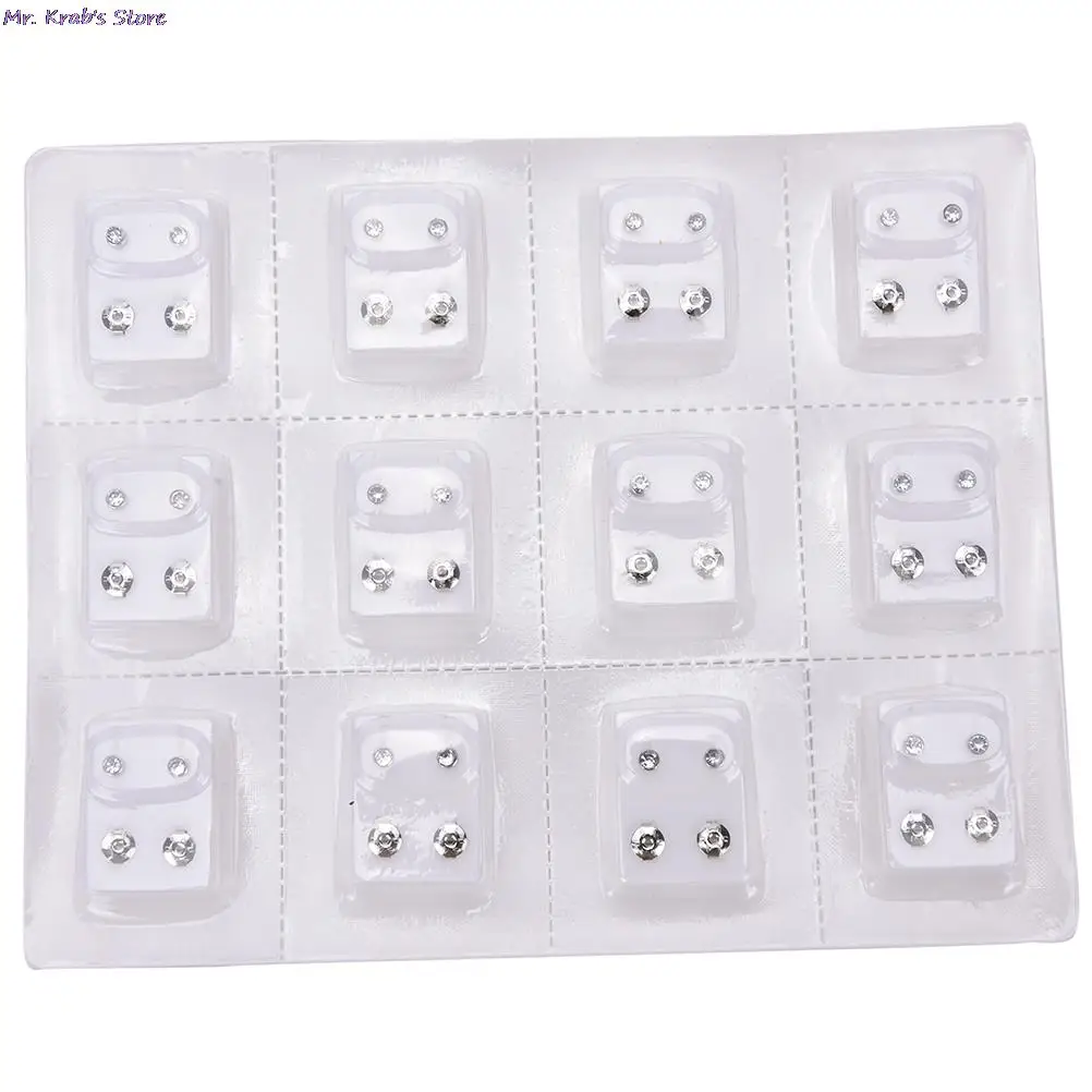 12 пар, Новый медицинский стальной сплав, одноразовый безопасный пистолет для пирсинг серьги-гвоздики, инструмент для пирсинга серебряного цвета, серьги для пирсинга