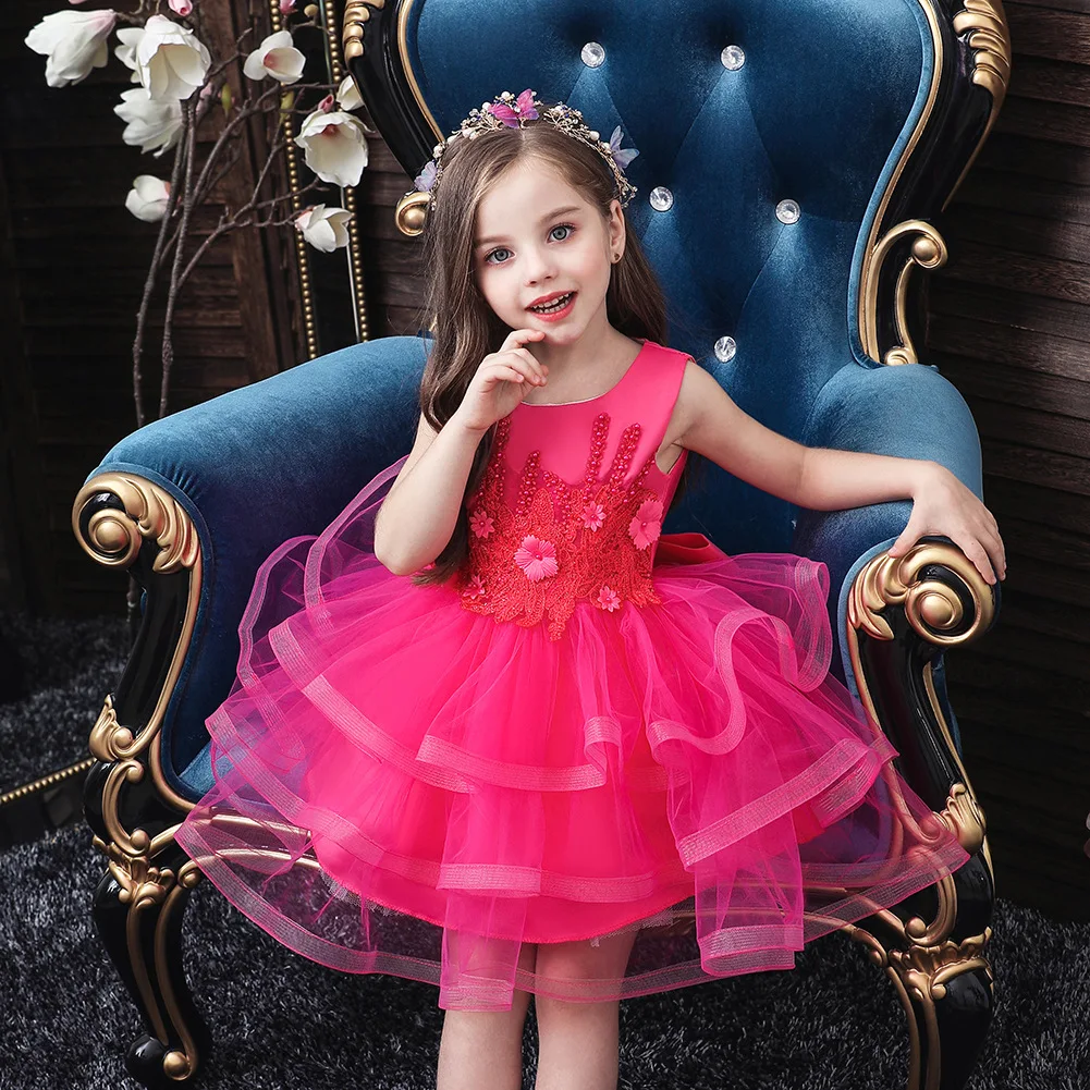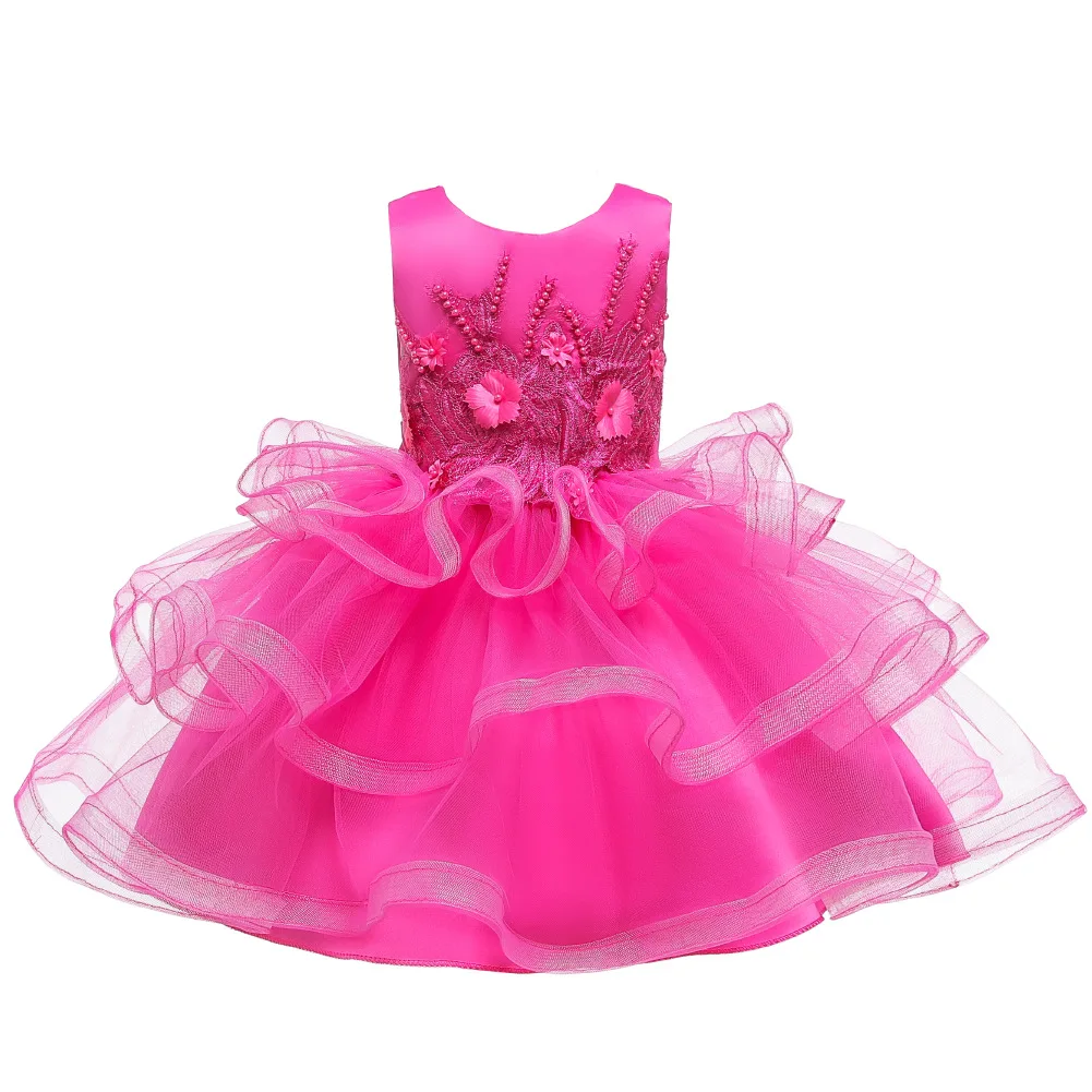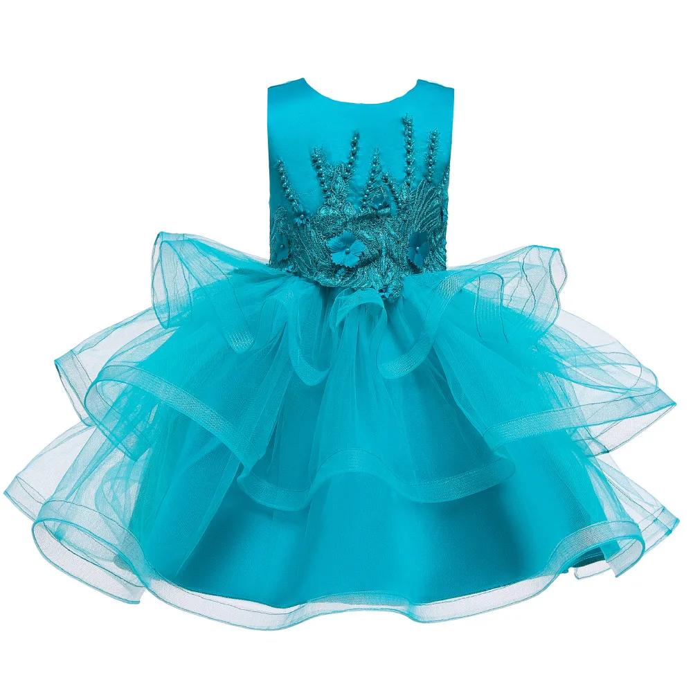 Платье принцессы с вышивкой, цветочным рисунком и круглым вырезом
