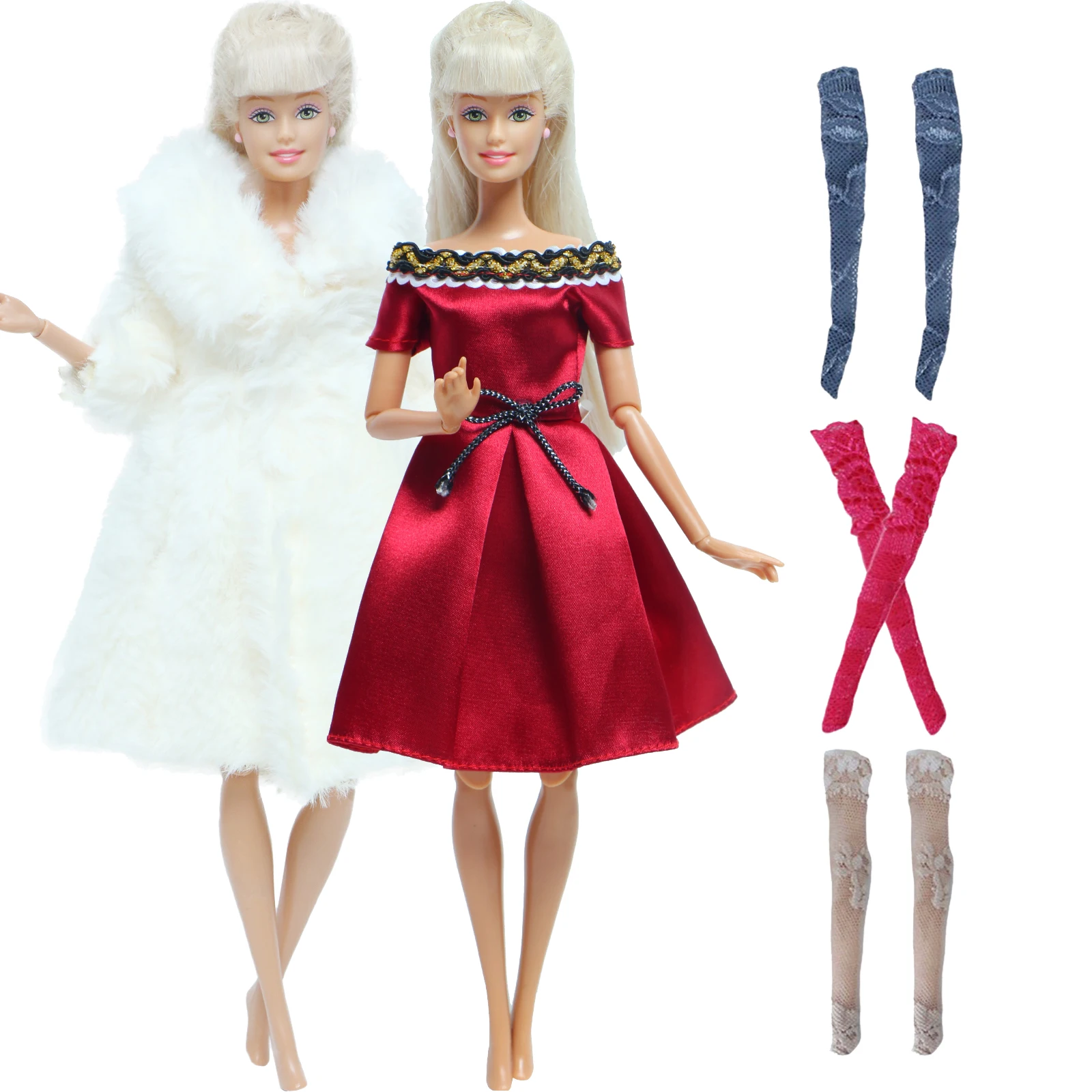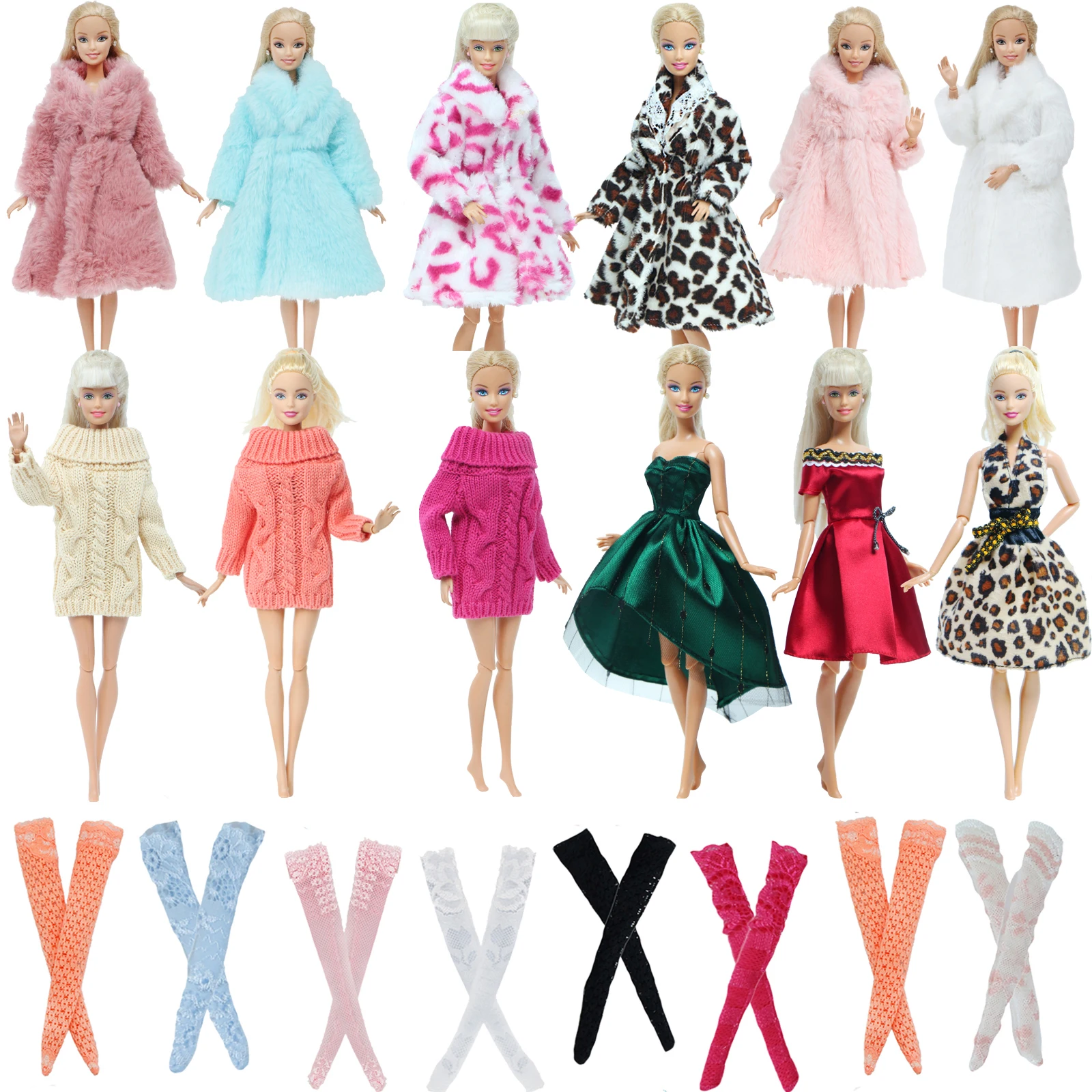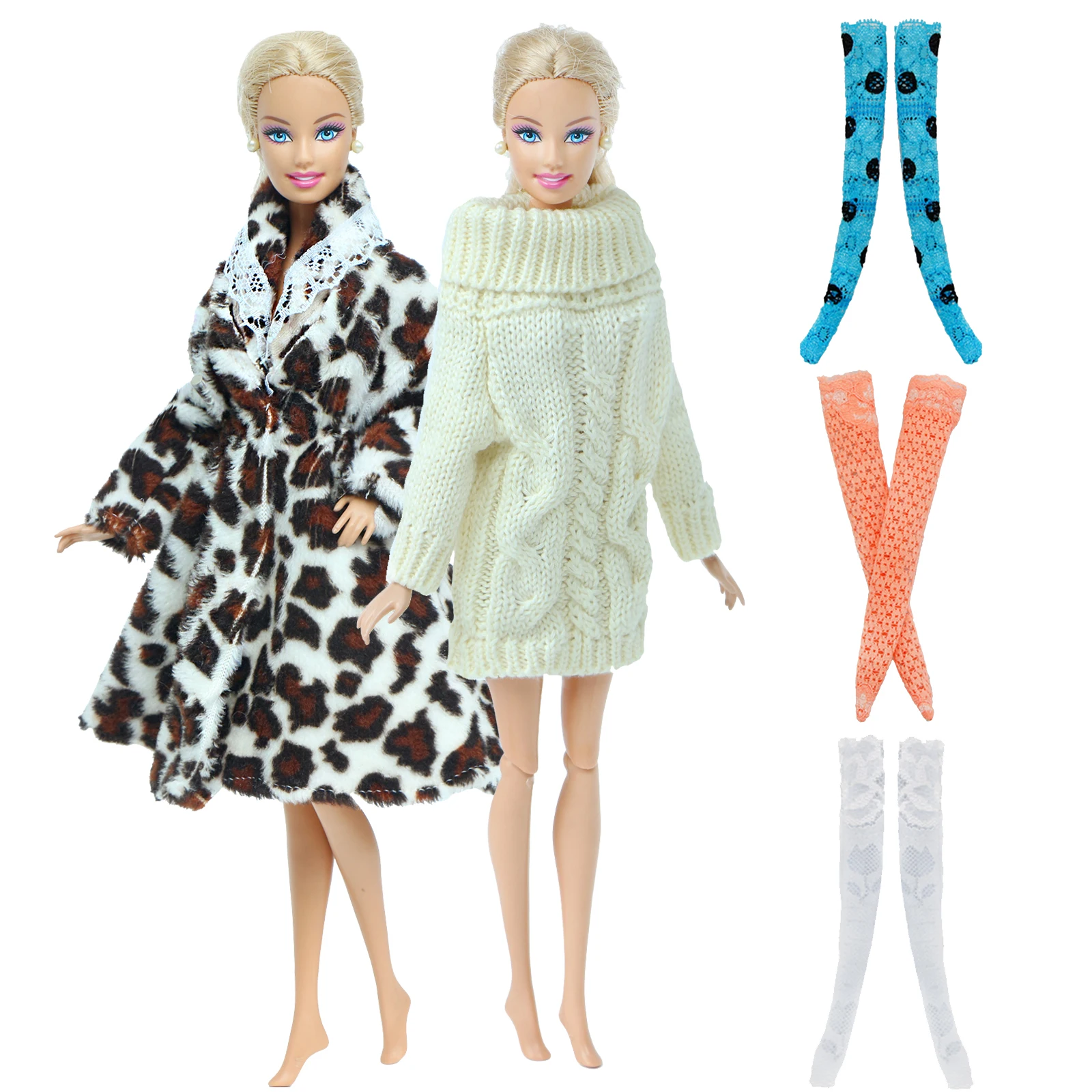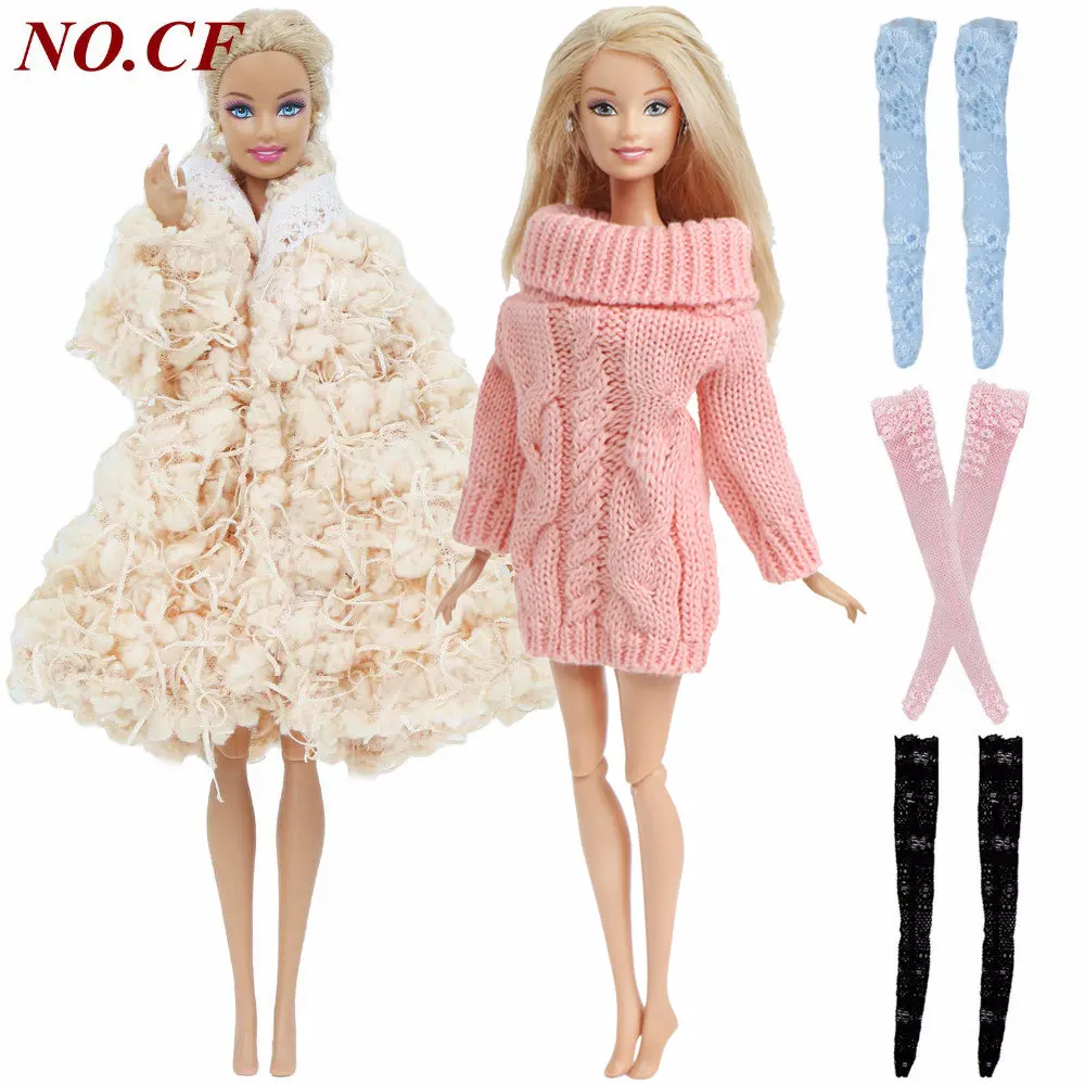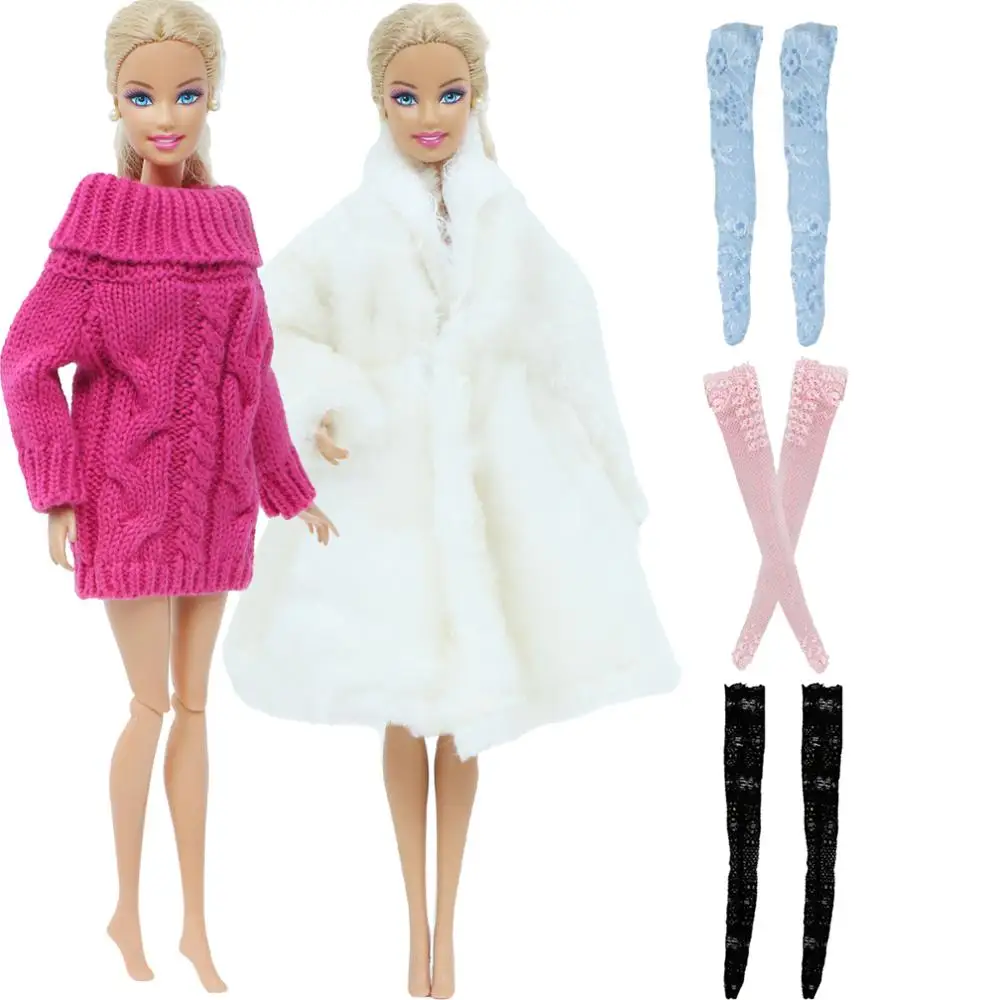 Модный зимний наряд для куклы Барби 5 шт.компл., 1x пальто, 1x свитер, Случайные Смешанные 3x чулки, аксессуары для одежды, игрушки сделай сам