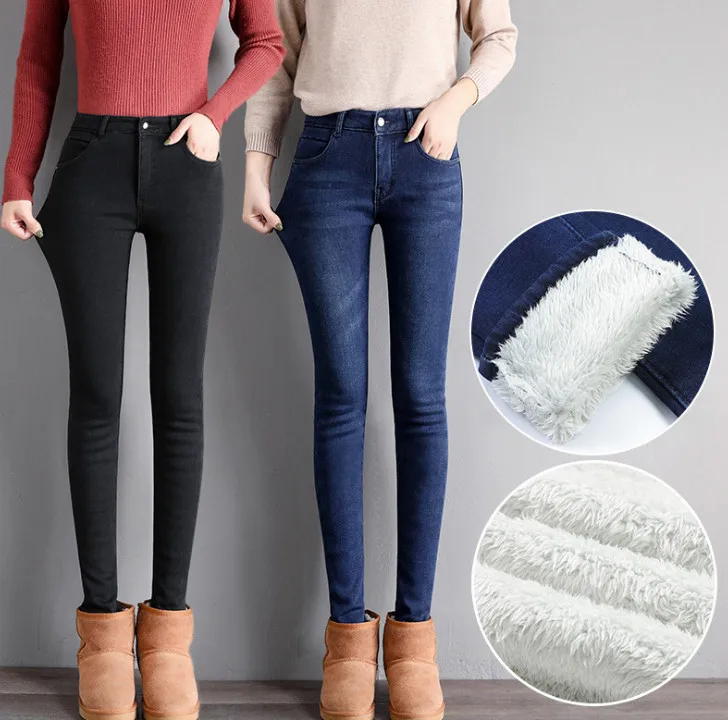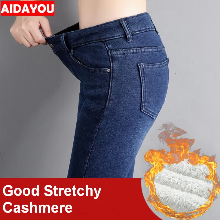 Женские джинсы, зимние Хорошие эластичные кашемировые утепленные штаны с подкладкой, брюки-карандаш, джинсовые брюки ouc672a