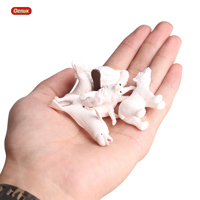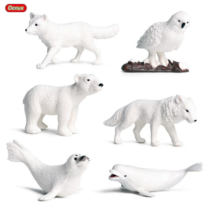 Характеристика:Oenux 6 шт. мини полярные животные кит полярный медведь лиса волк Снежная сова модель фигурки миниатюрные ПВХ Милые Развивающие игрушки для детей