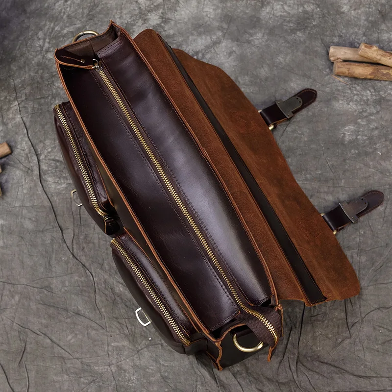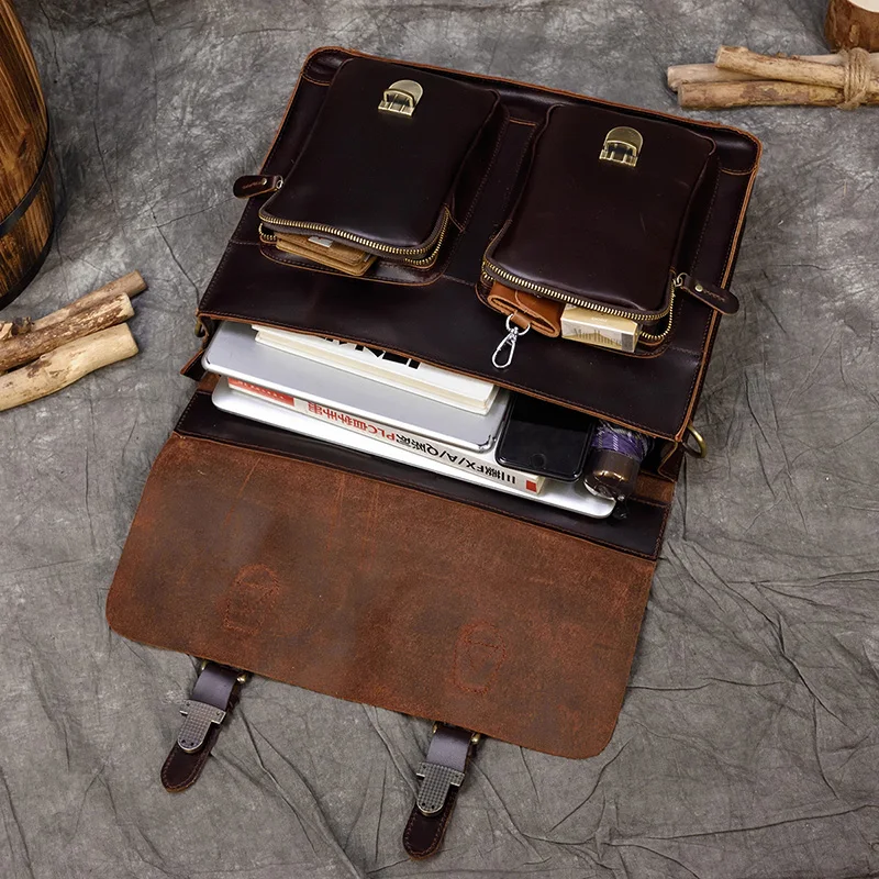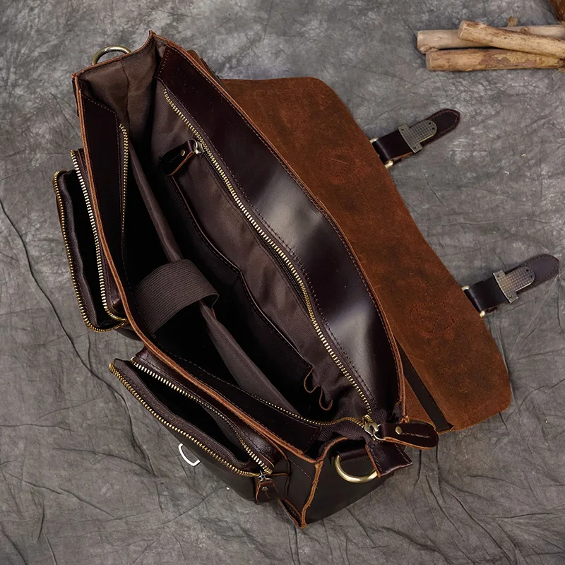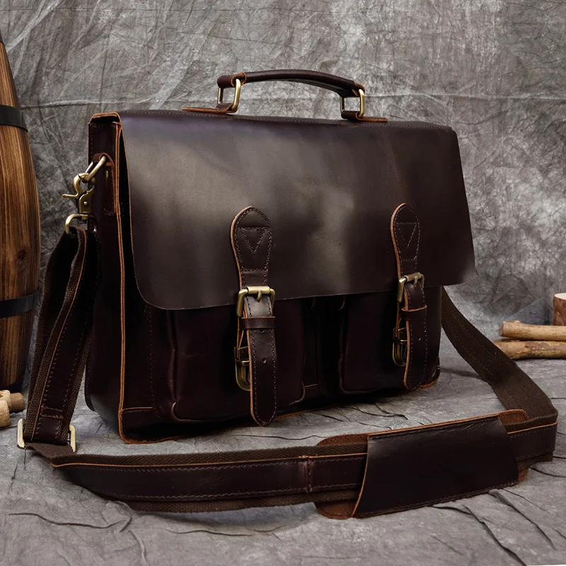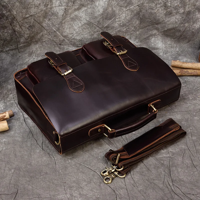 Портфель MAHEU мужскойженский классический, Роскошный деловой чемоданчик из натуральной воловьей кожи, Многослойная Сумочка для ноутбука, цвет черныйкрасный