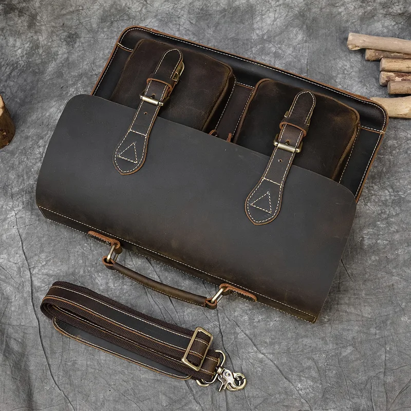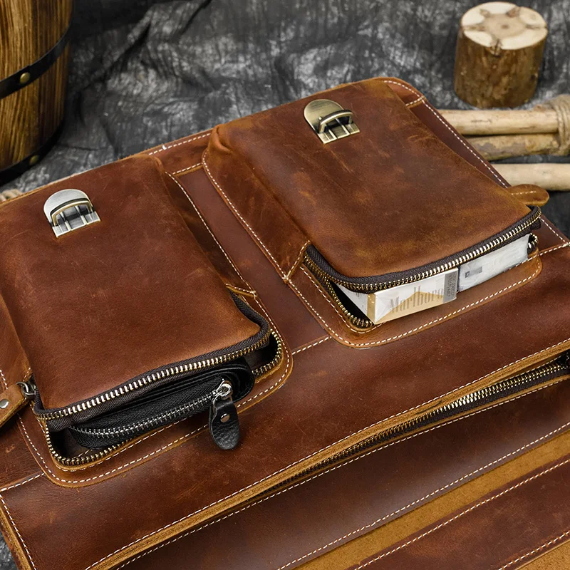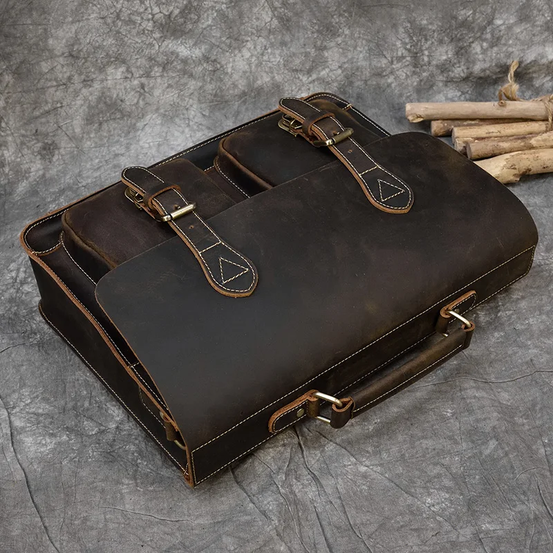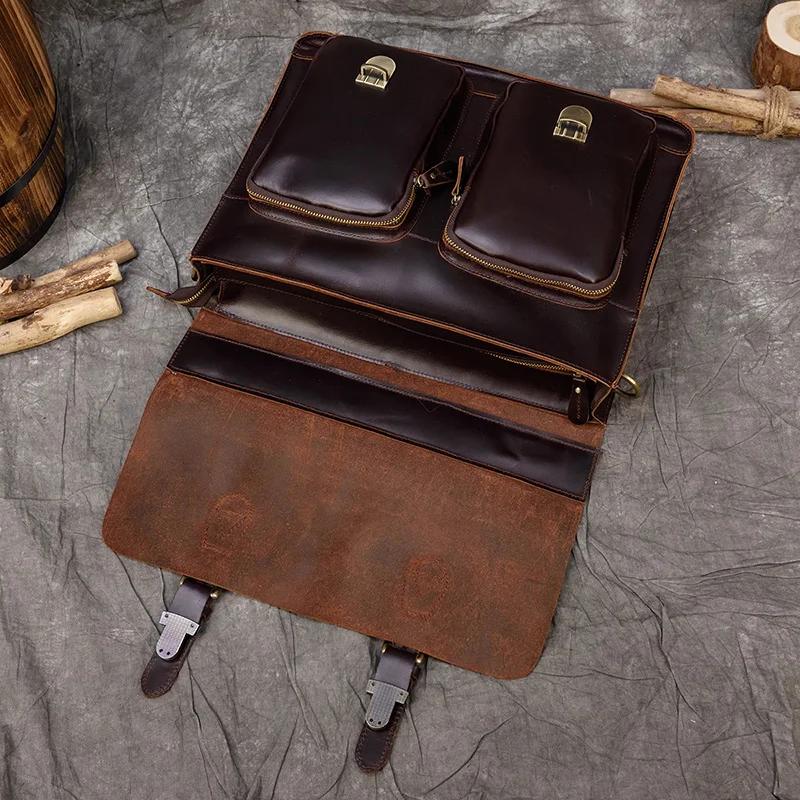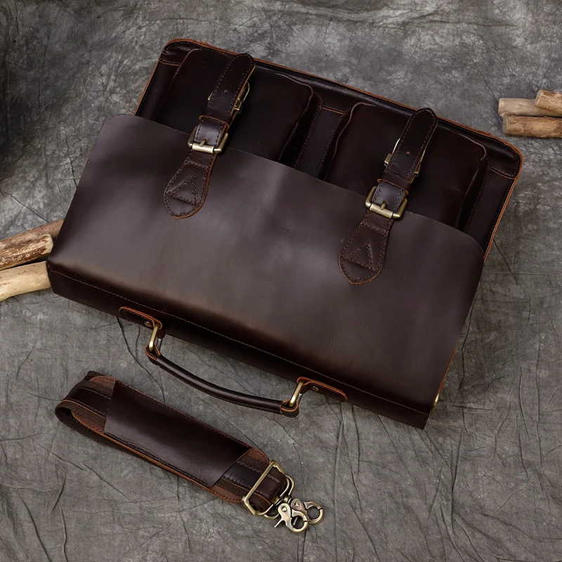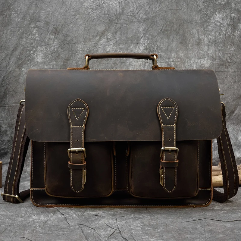 Портфель MAHEU мужскойженский классический, Роскошный деловой чемоданчик из натуральной воловьей кожи, Многослойная Сумочка для ноутбука, цвет черныйкрасный