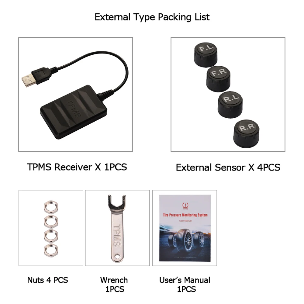 USB TPMS монитор давления в шинах для Android навигация беспроводная цифровая передача TPMS сенсор инструмент + Внутренний Внешний датчик