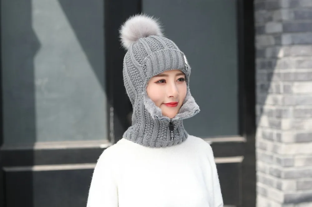 Шерстяная вязаная шапка для девочек, лыжная шапка для женщин, ветрозащитная зимняя вязаная шапка для улицы, теплый плотный сиамский шарф, теплый уличный Набор для верховой езды, подарок