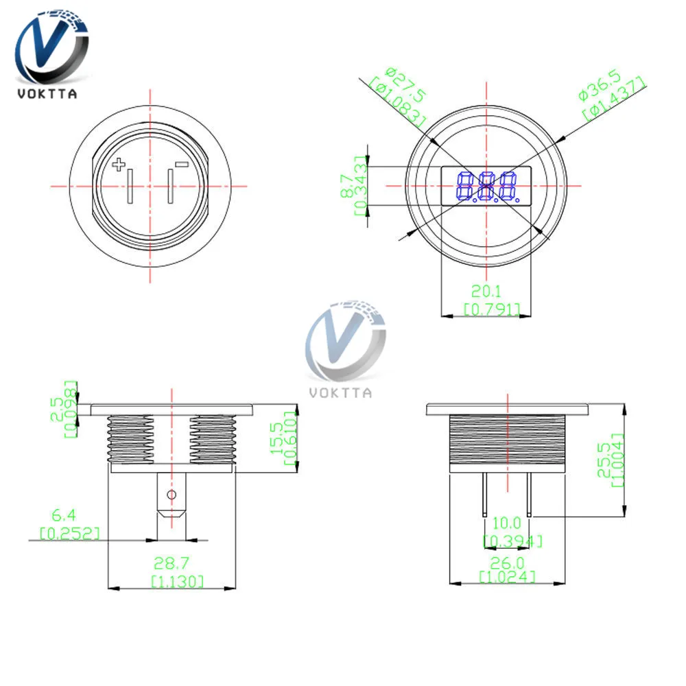 3-битный цифровой вольтметр постоянного тока 5в-48в, Круглый Водонепроницаемый светодиодный индикатор, мини цифровой измеритель напряжения, тестер, монитор, дисплей, вольтметр