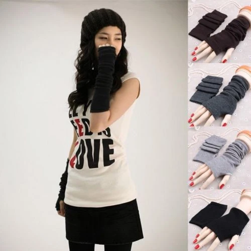 Зимние теплые трикотажные перчатки для рук и рук, длинные перчатки без пальцев, перчатки без пальцев, мягкие теплые варежки, рукавицы для локтя