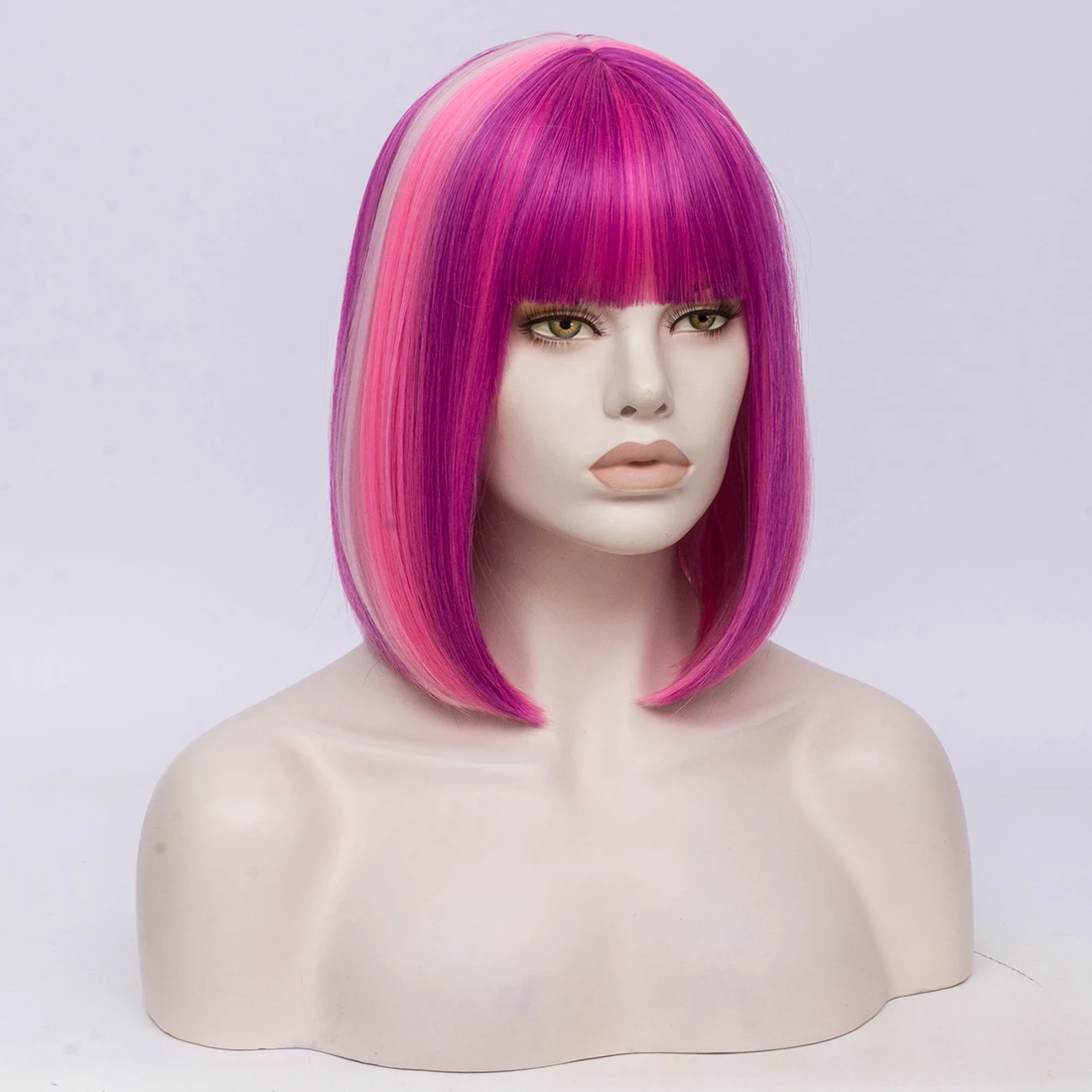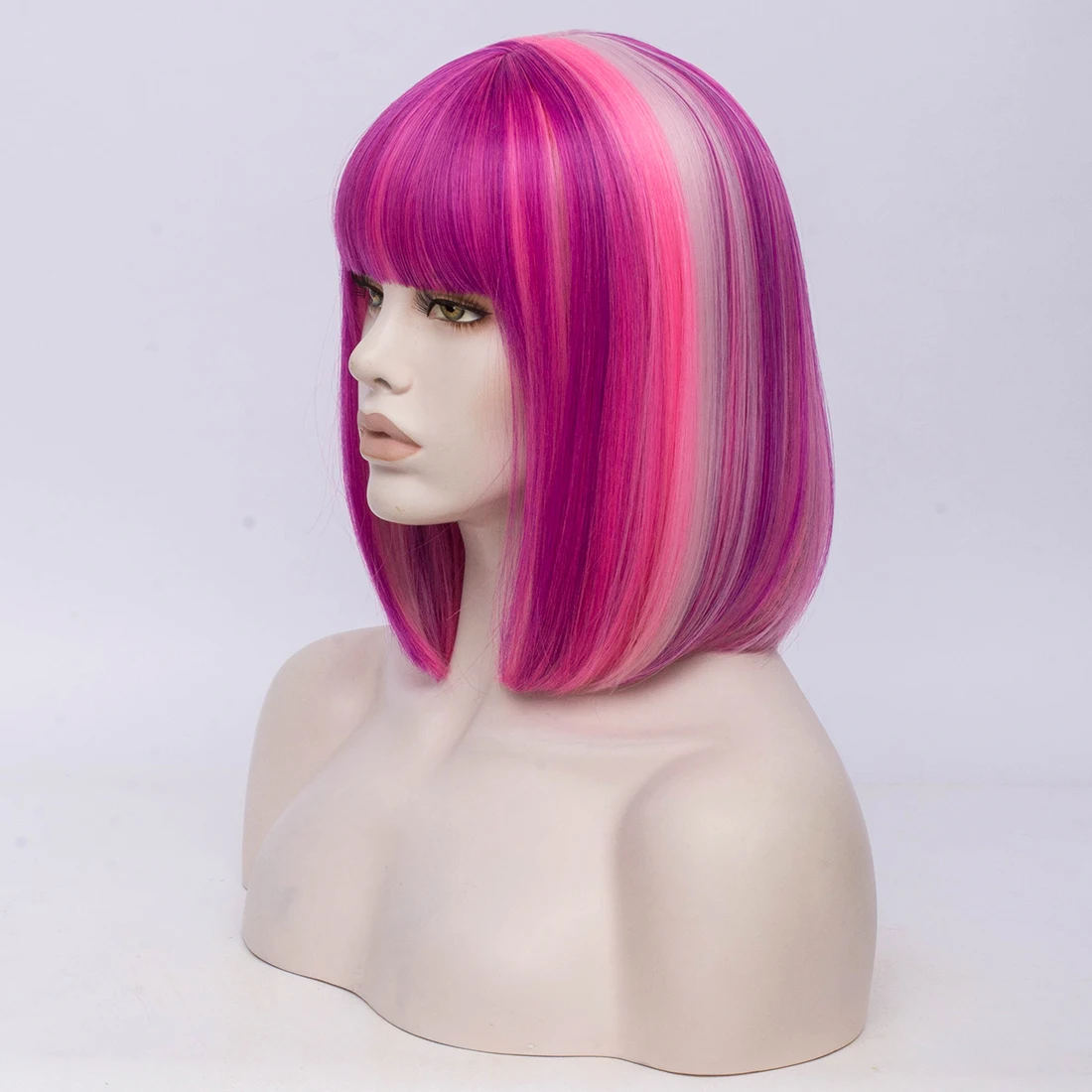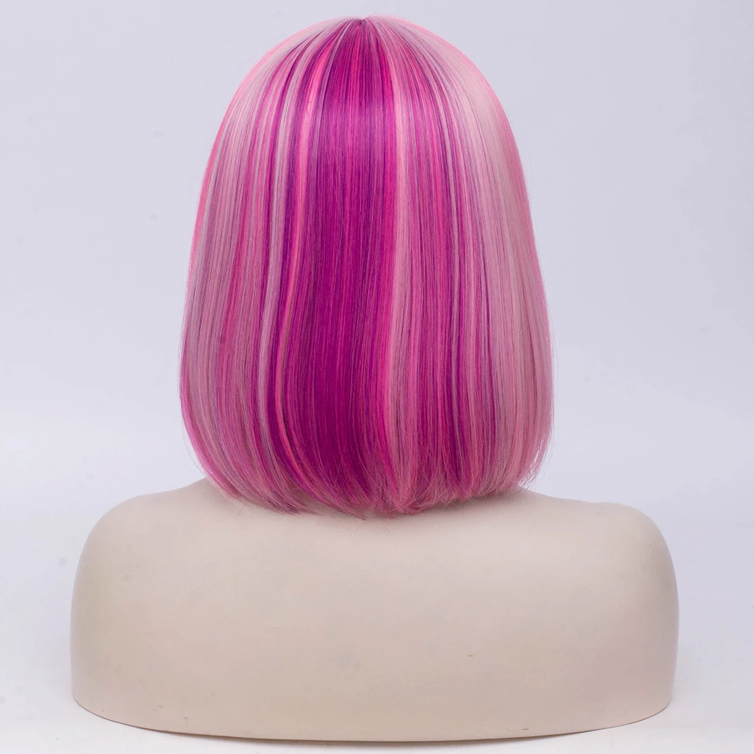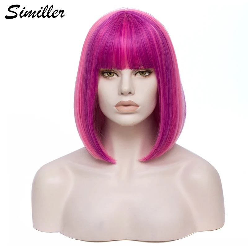 Женский короткий парик Similler, парик из синтетических волос с розовым и красным Омбре, парик для косплея