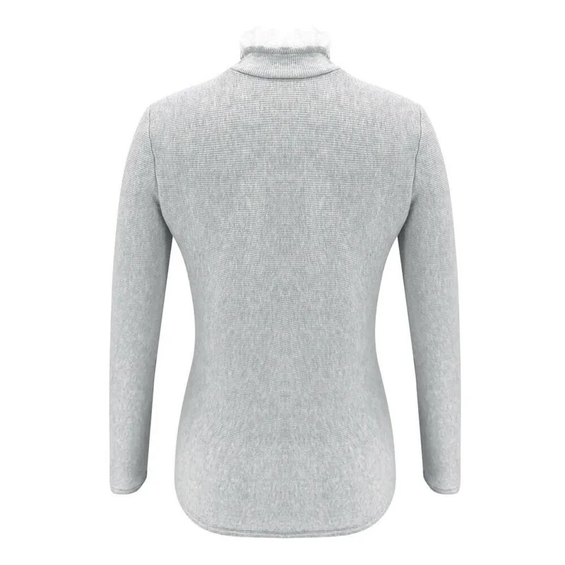 Модная женская кружевная ажурная водолазка с жемчугом, топ, серая Женская осенне-зимняя теплая блузка, новый сексуальный кружевной ажурный топ с длинным рукавом