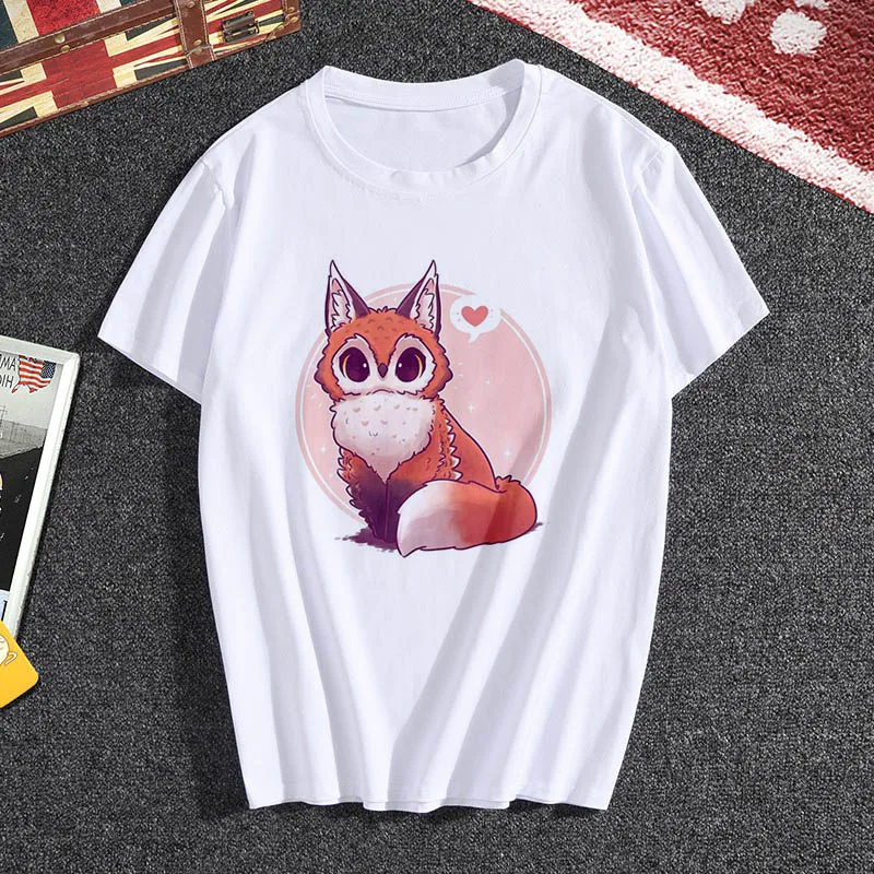 Футболка женская хипстерская, белая, с принтом лисы, в стиле Харадзюку, 2020