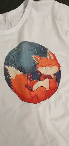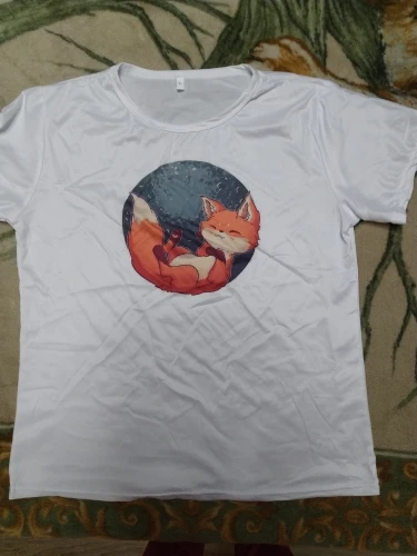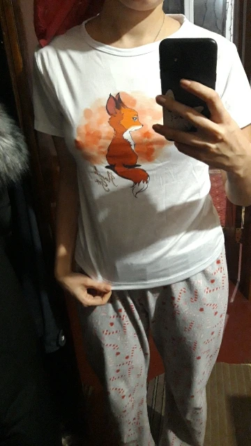 Футболка крутая, материал приятный к телу, похож на шелк, не пожалела ни сколько! Хорошо что рисунок вшитый, не треснет спустя несколько стирок) Очень милый рисунок! И давно такого небыло, заказала в Московскую обл. 01.04, написано было, что товар придёт 24.04, а пришёл аж 21.04, обычно по 2 месяца идёт с алиэкспресс!