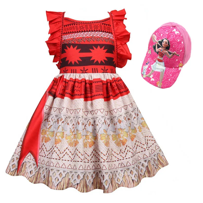 Детские платья для девочек, костюм для девочек, Моана, косплей-принт, ваяна, одежда принцессы на день рождения, летнее платье с открытой спиной для девочек