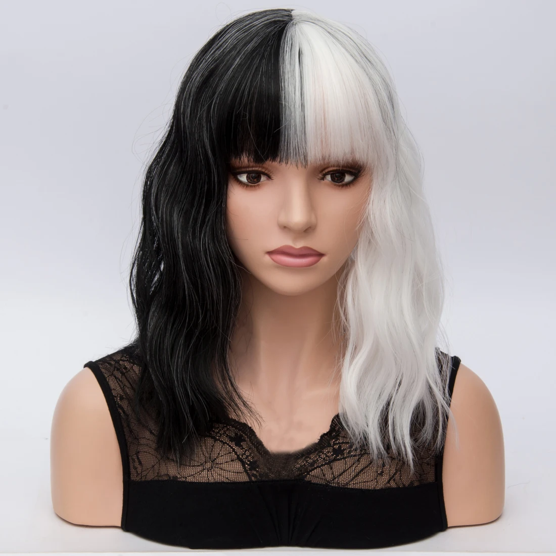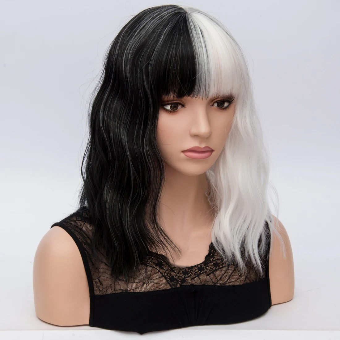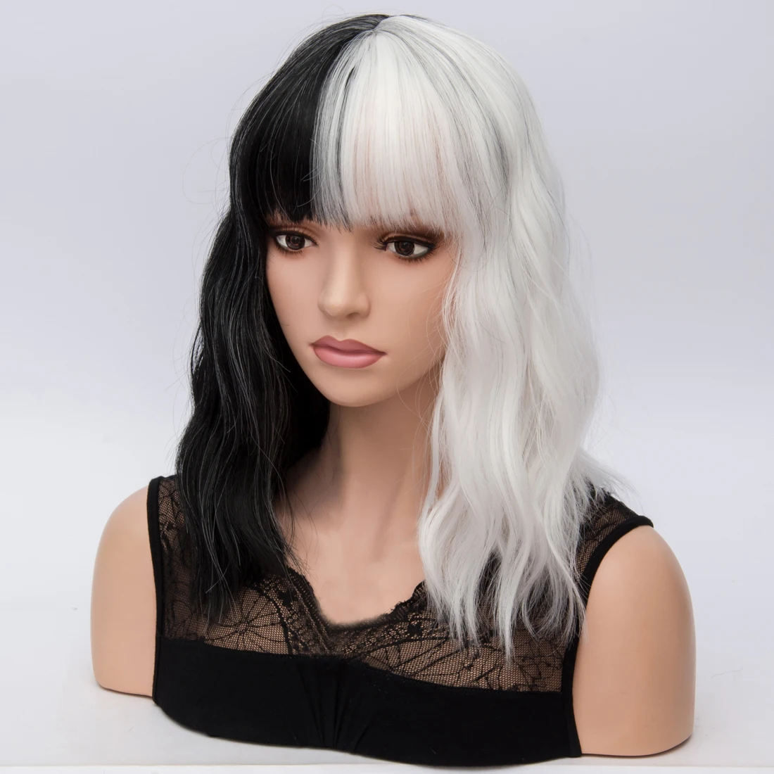 Короткие синтетические парики Similler для женщин, косплей, черный, белый цвет, пестрый цвет, высокотемпературное волокно, с бесплатным париком