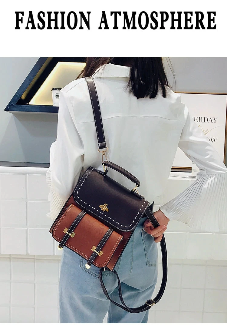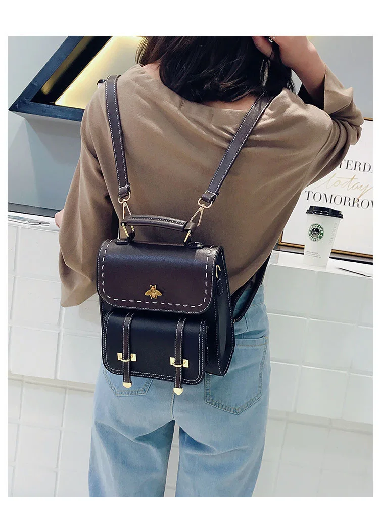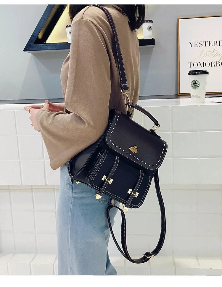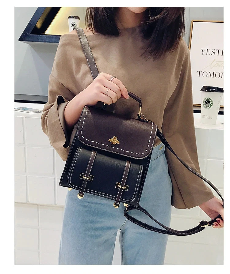 Женский рюкзак с маленькой Пчелой, школьный рюкзак для колледжа, винтажный женский рюкзак из искусственной кожи в стиле преппи, Женский Известный Рюкзак, женский рюкзак, 2019