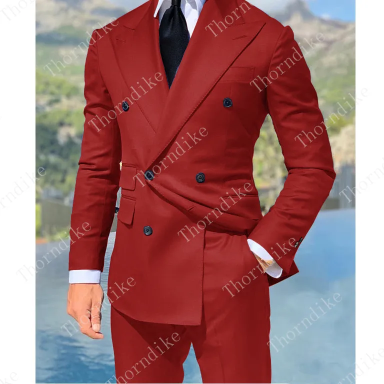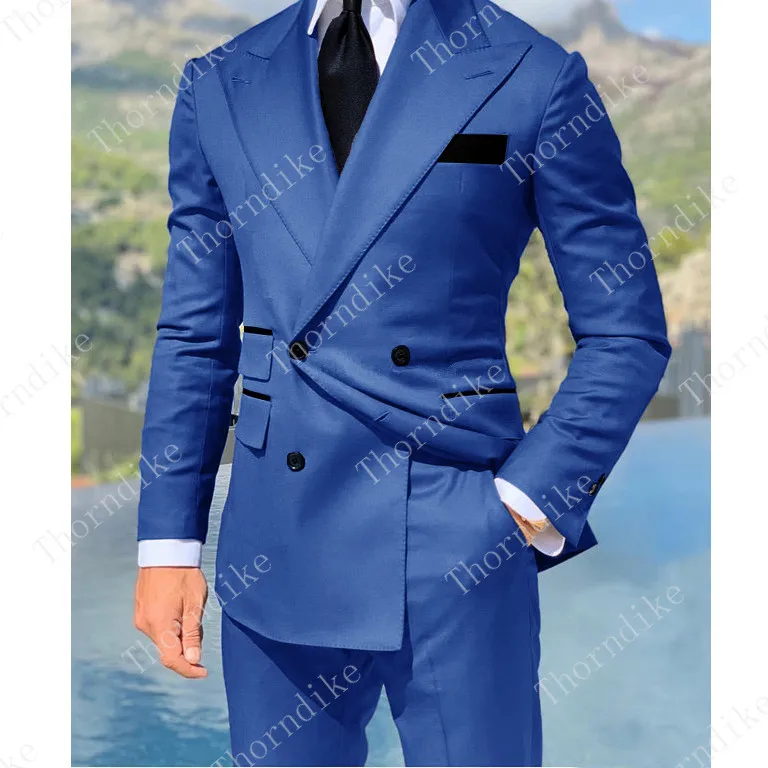 Ярко-синий двубортный костюм, модные мужские костюмы, высококачественные мужские костюмы на заказ Terno, приталенные Мужские красивые (куртка + брюки)