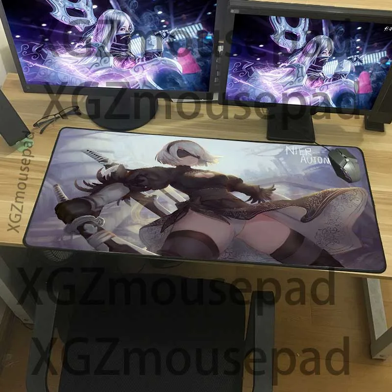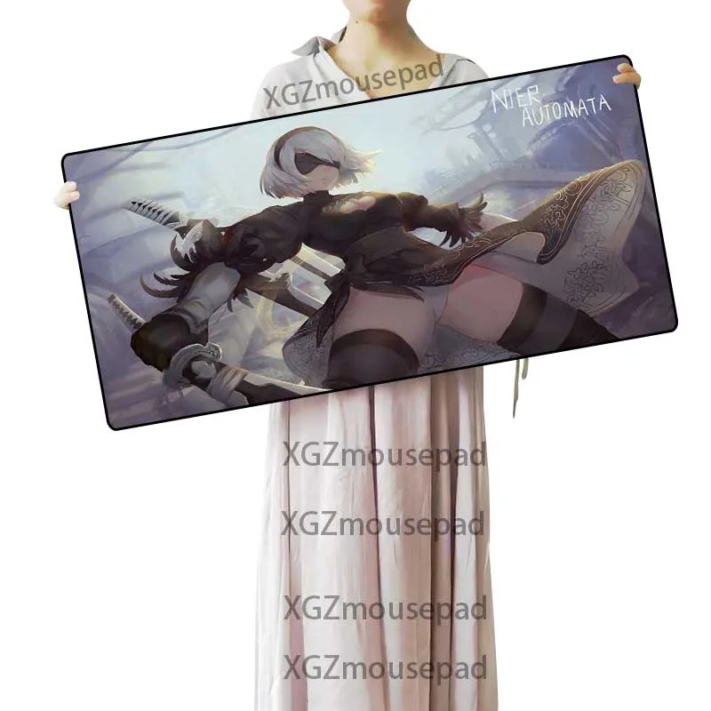 Большой игровой коврик для мыши XGZ, черный аниме коврик с застежкой по краям, сексуальная подставка, ниус: автоматический домашний коврик для компьютерного стола, нескользящий, 900x40 0900x300