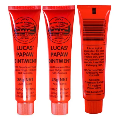 Потрескавшаяся кожа (включая сухие/крепкие губы и треснувшие соски) Сыпь для подгузников Фуражки Небольшие открытые раны Ожоги Укусы насекомых Подкрепление Гравийная сыпь Осколки Солнечные ожоги Временное облегчение симптомов экземы и дерматита Лукас средство Papaw мазь была произведена Лукас средства защиты в течение более 80 лет и имеет во всем мире следующий. Вот выписка из листка продукта компании, которая показывает историю продукта: "В течение нескольких лет д-р т п Лукас практиковался в Лондоне. В поисках более теплого климата он прибыл в Австралию в 1876 году, практиковался в Мельбурне в течение 10 лет, прежде чем переехать в Квинсленд. Он был здесь, в Квинсленде, в поисках естественного средства от болезни, он провел свои научные исследования и эксперименты, которые привели к его разработке мази папау. После многих лет исследований в качестве ботаника с профессиональным опытом, он заявил в своем справочнике 1906, что он верил, что papaw был лучшим антисептиком, но обнаружил. Антисептические свойства ускоряют очистку ран. Он верил, что свойства дерева папау (Carica Papaya) сделали его одним из самых выдающихся деревьев в мире. Из тысяч экземпляров, которые прошли через его руки, которые привлекали его самое пристальное внимание и которым он посвятил особое исследование, было дерево папау. Его исследования заставили его поверить, что он сделал выдающееся открытие. T.P. Лукас получил много лекарств с помощью средств, сделанных из дерева папау."