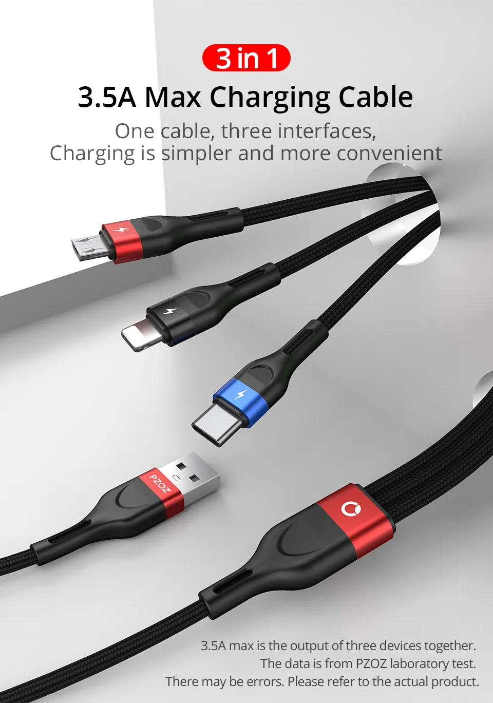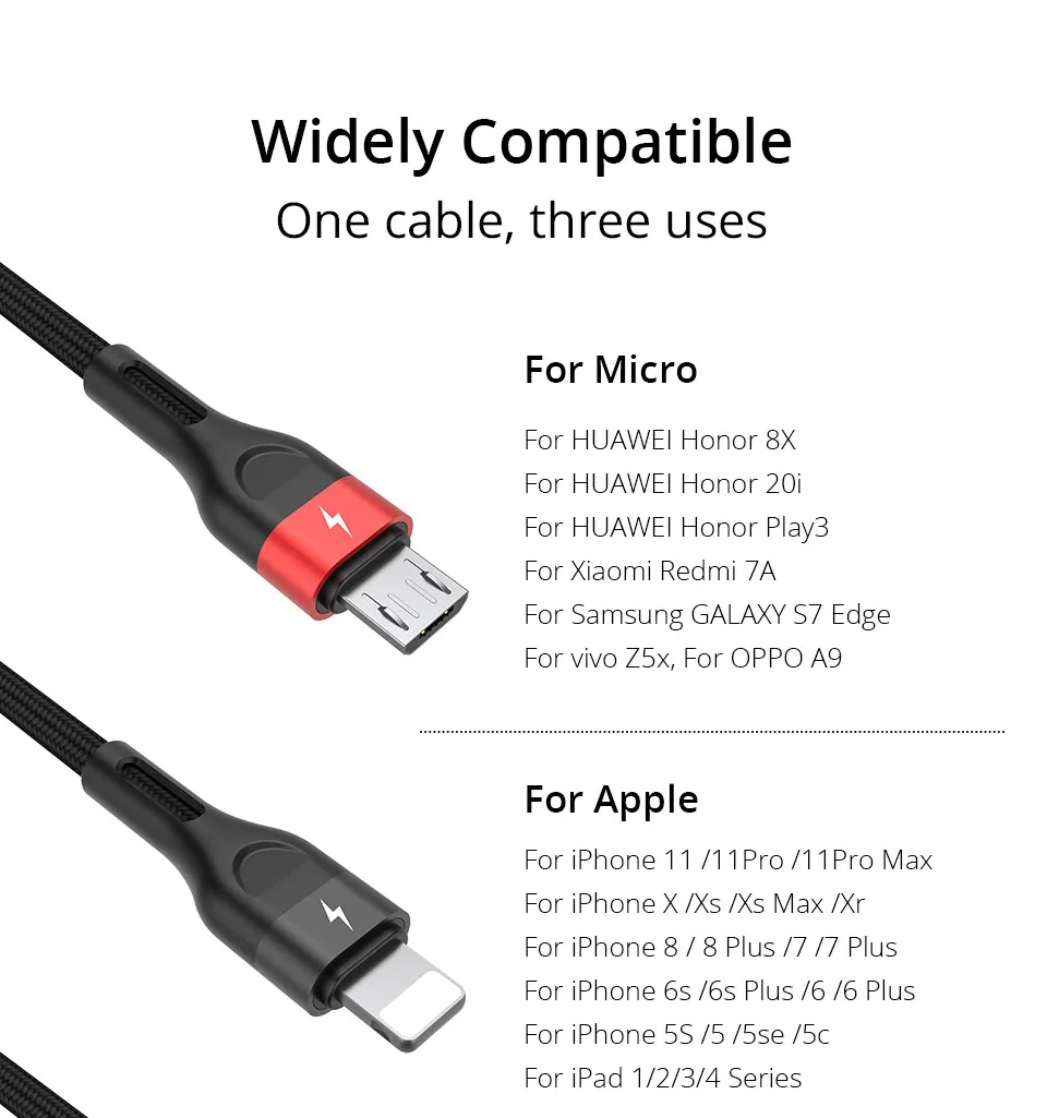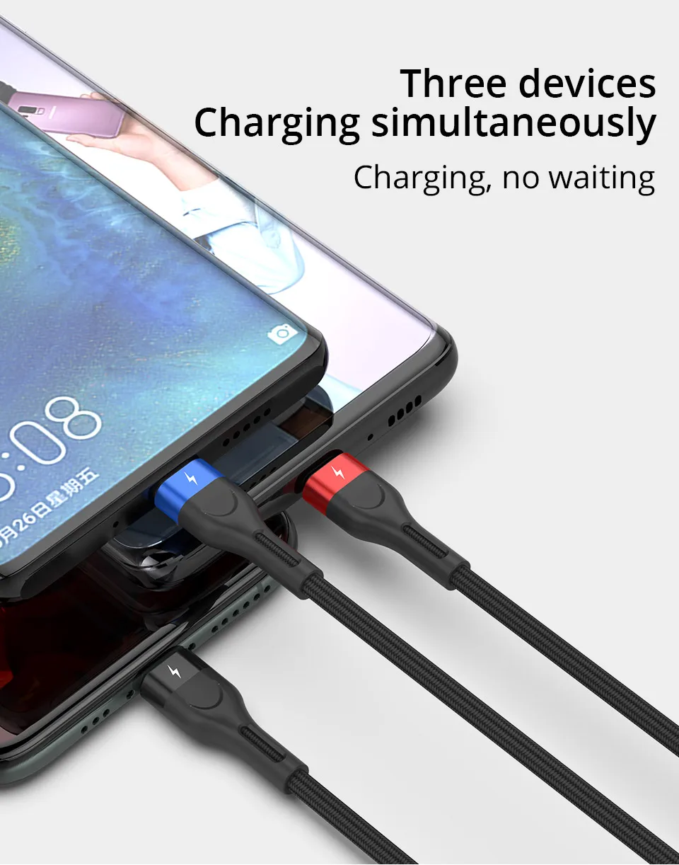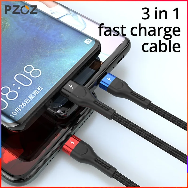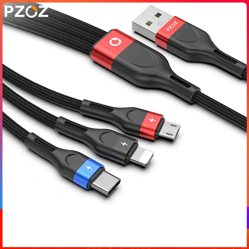 USB-кабель PZOZ 3 в 1 для iphone, Xiaomi, Sunung, кабель для быстрой зарядки Micro USB Type-C