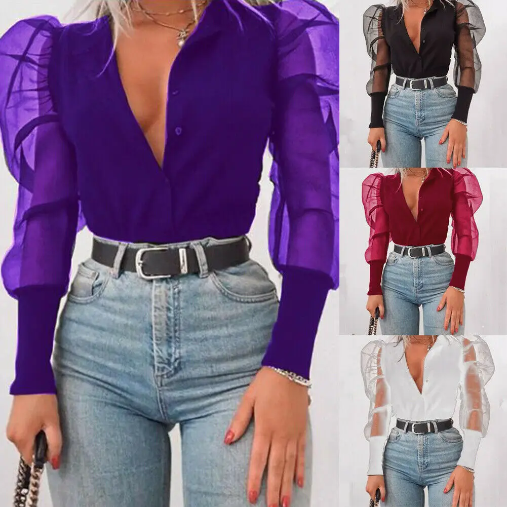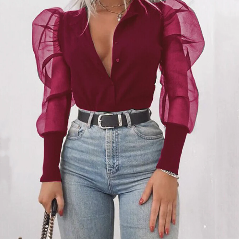 Блузка женская с пуговицами на пуговицах и V-образным вырезом