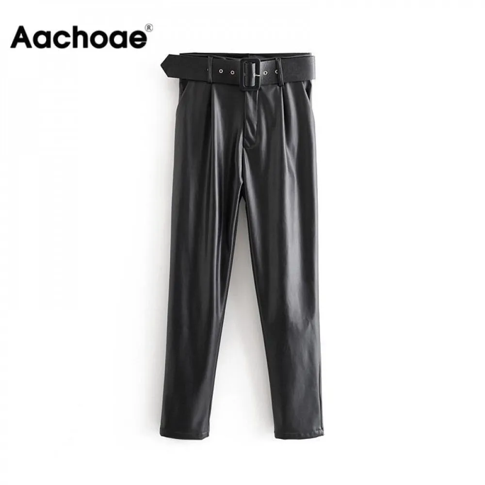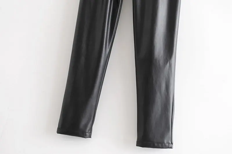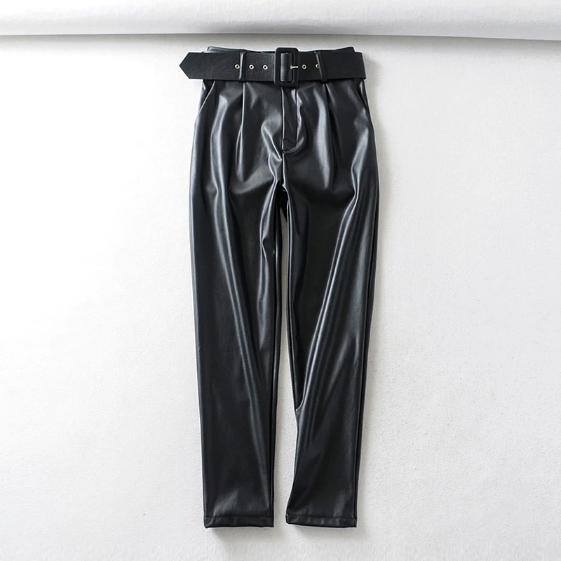 Брюки женские из искусственной кожи, с высокой талией и карманами