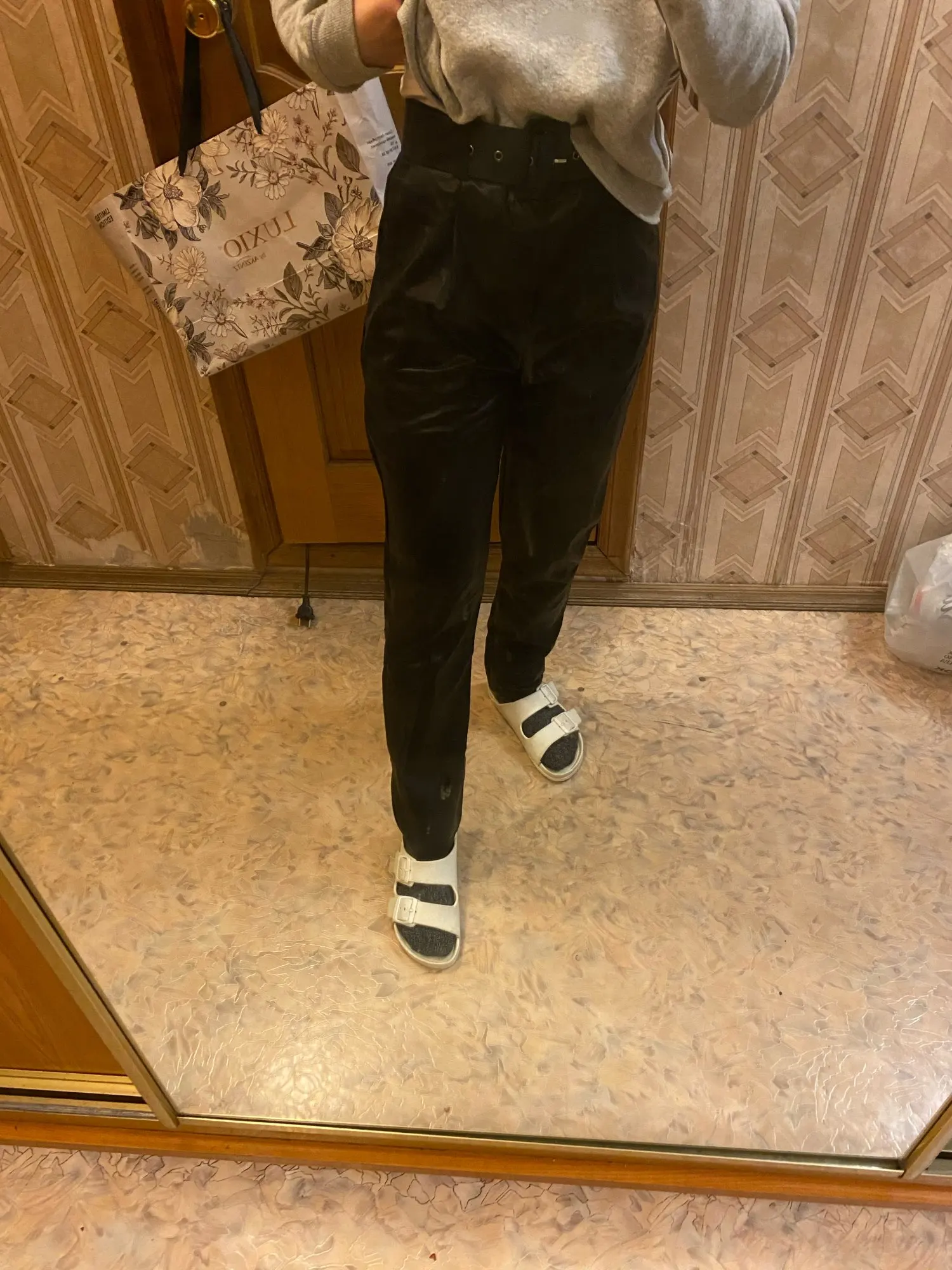 Доставка 23.11 - 22.12, МистЭкспресс, 17,70$. Штаны упакованы в зип-пакет, отдельно ремень. С на параметры ОТ64, ОБ90, ожидаемо слегка большеваты, учитывая ещё, что я поправилась немного, но с поясом пойдет. В ногах свободно, как должно быть, не висят как шаровары и не обтягивают. Посадка высокая, длина на 173 нормально под ботинки, с низкой обувью короткие, но кому-то и так нравится. Качество огонь, приятный материал, швы хорошие, только сзади одна шлёвка не ровная, это мелочь и не видно. Кстати, ремень вживую смотрится намного лучше, чем я ожидала. Только вот прям на последнюю дырочку и свободно немного. И не поняла застёжку - может она у меня с браком, но она просто не застёгивается. Но есть пуговица, ну и ремень. Однозначно рекомендую, даже самый обычный образ с ними сразу круче становится) И стоит здесь минимум в два раза дешевле, чем в нашем масс-маркете, а качество намного лучше.