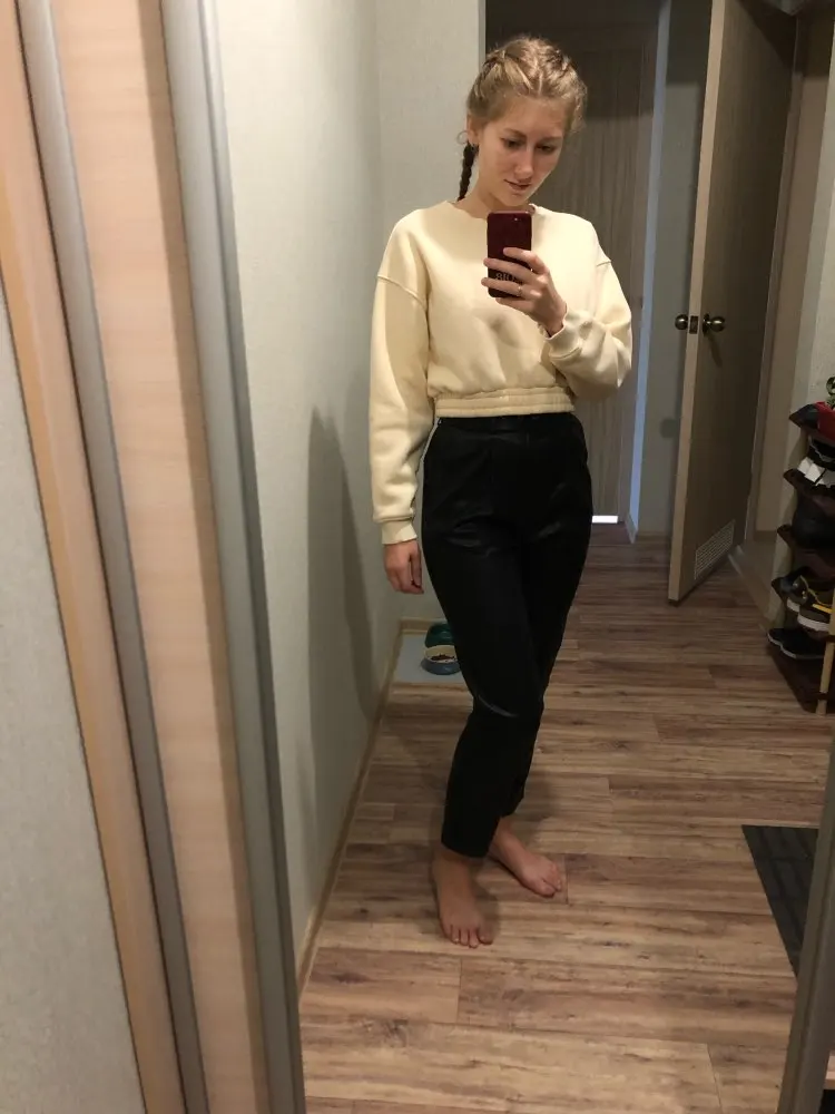 Поставила пять звёзд, только из-за того, что цена, по которой покупала была действительно низкой. Ожидала более лучшего качества ткани, думала она будет погрубее. В действительности ткань очень мягкая, как для кожаных лосин. Вверху зажимы на штанах топорщатся, хотя размер подошёл идеально и штаны нигде не перетягивают меня. На рост 174 длина подошла идеально, в остальном от покупки не в восторге, но все же сношу.
