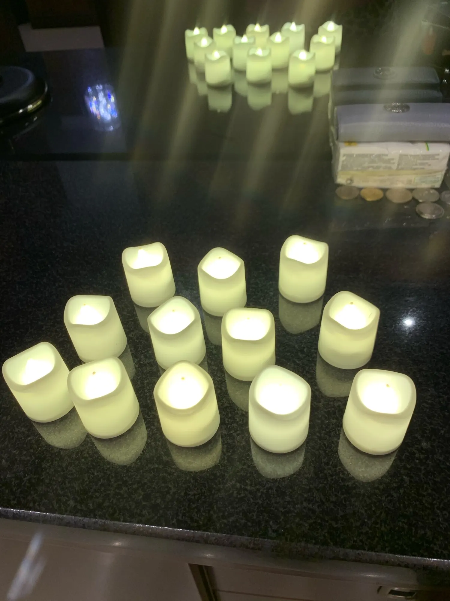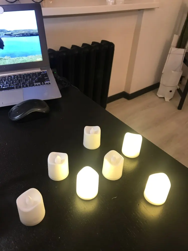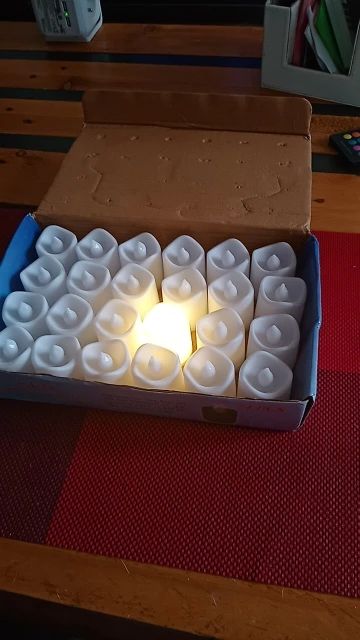 Keliavo 2 mėn į Lietuvą. Gražios žvacių imitacijos. I'm Card on battery-Tablets užtaisytos. Įjį ir šviečia.