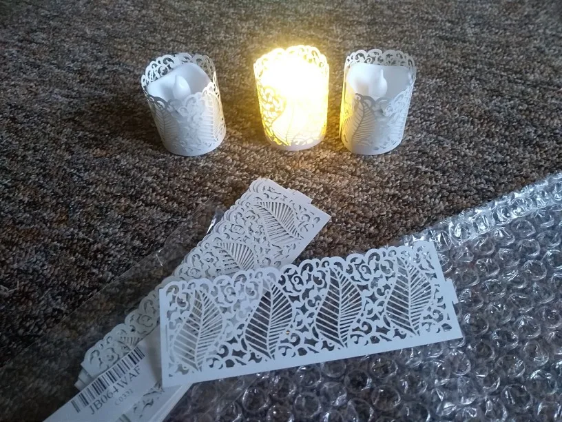 Офигенные ( не знаю как их назвать) подставки для свечей, у меня темные. Смотрятся очень красиво. Видела в отзыве, что при сборке, получается не красивая форма, не круглая, но это не так. Просто крепление нужно не изнутри вставлять, а снаружи внутрь и получается идеально. Бумага плотная, узор красивый, мне очень нравится. С ними свечи смотрятся прекрасно!!!